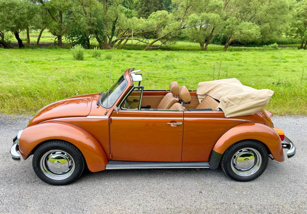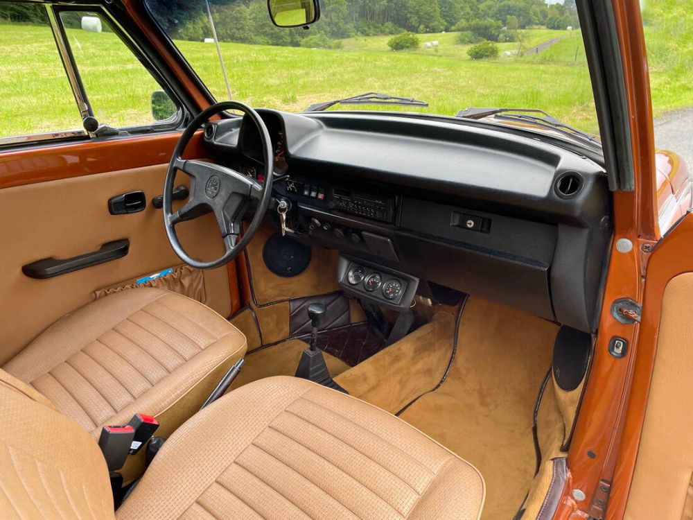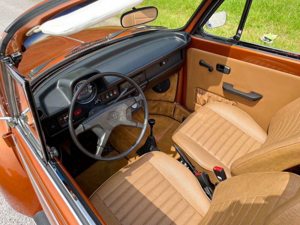Restaurierter VW Käfer Cabrio in Brasilbraun Metallic mit revidierten und Leistungsgesteigerten 80PS Motor, mit Ölkühler Vorn, Benzinleitungen, Bremsen, Hinterachse komplett überholt in 2018. Mit neuem Sonnenland Stoffverdeck in Beige. Lediglich an den Türen L/R und an den Hinteren Radläufen L/R ist ein Bläschen im Lack. Das Käfer 1303 fährt sich hervorragend mit 80PS Leistung und hat einen kernigen Klang. Ein WGA über € 36000,- ist vorhanden, TÜV Neu natürlich mit H-Zulassung. Wir verkaufen den Käfer aus Altersgründen im Kundenauftrag.