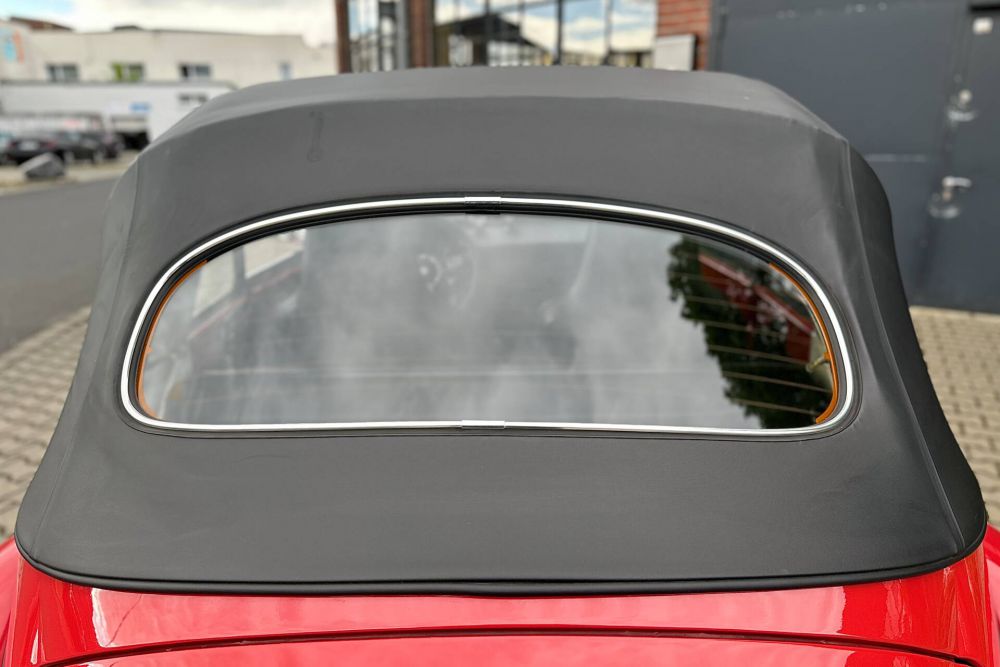 Dieses Cabrio ist mit einem Oettinger Motor mit zwei Vergasern und Ölkühler ausgestattet, die Motorleistung (ca. 65 PS) sind in den Papieren eingetragen. Zur weiteren Ausstattung gehören: zeitgemäße ATS Alufelgen, Drehzahlmesser, Öltemperaturanzeige, zeitgemäßes Blaupunkt Radio, ein nachgerüstetes und rückbaubares Windschott. Wir haben zum Foto-Shooting ein 15 Zoll MotoLita Lenkrad mit Lederkranz eingebaut... sieht halt gut aus! Zu dem Auto gehört das originale VW Lenkrad, welches sich ebenfalls in einem sehr guten Zustand befindet. Was ist nicht so schön? Die Verdeck-Persenning könnte man erneuern.