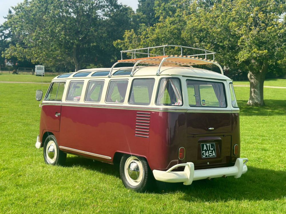 Volkswagen Type 2 23 Window Samba 1963 A registration. Cream over dark red with matching beautifully re-trimmed interior. This very rare bus is a genuine German built 23 windows, which was supplied new to the German Embassy in Mexico City as their Minibus, they sold it in 1969. There is a birth certificate to show its authenticity.