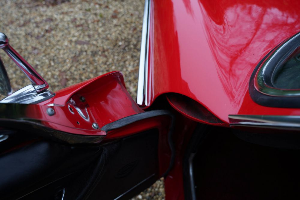 The specimen we offer here is a 1964 Volvo P1800S. This fine P1800S was restored in the past and still bears witness to the fine job they achieved. The overall appearance is quite breathtaking. The bodywork makes a solid impression. The doors produced that typical Volvo sound and feel good. Looking at the rubbers, we can conclude that they look fresh, as do the bumpers and the beautiful hub caps. The red body colour is in good condition for an older restoration, and the colour perfectly enhances the lines of its sporty body.