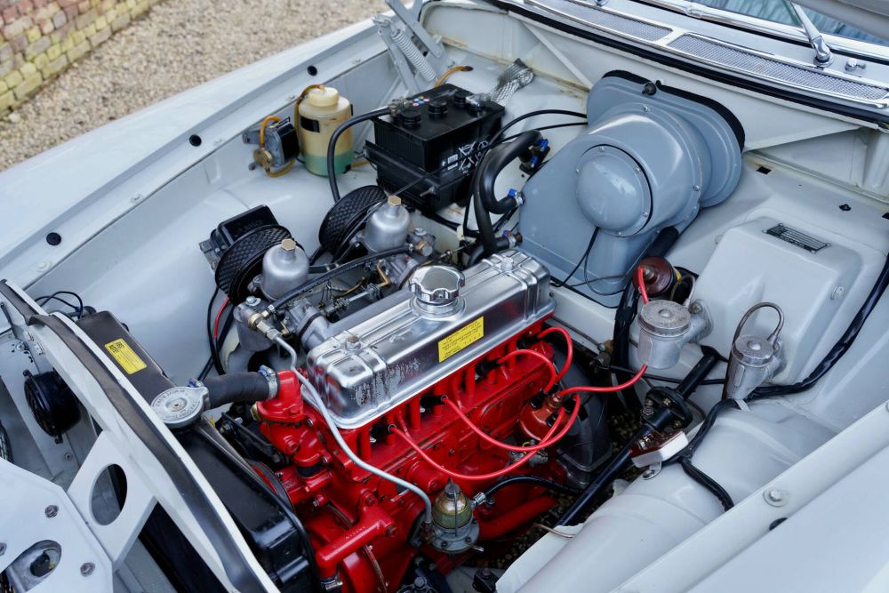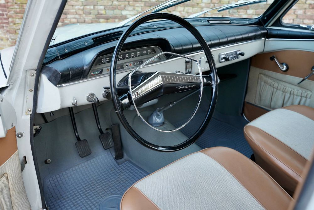 The interior is highly original, authentic, and well-maintained, featuring correct details, such as the original steering wheel, dashboard, and instruments. Even the original upholstery is still intact. The car also comes with its original instruction booklets, including a manual for the Marchal fog lamps, which are correctly mounted at the front. Simply put, this is an Amazon in collector-grade condition.