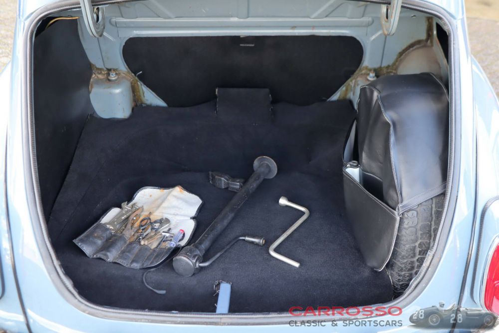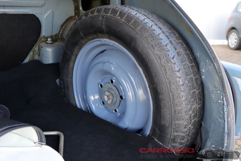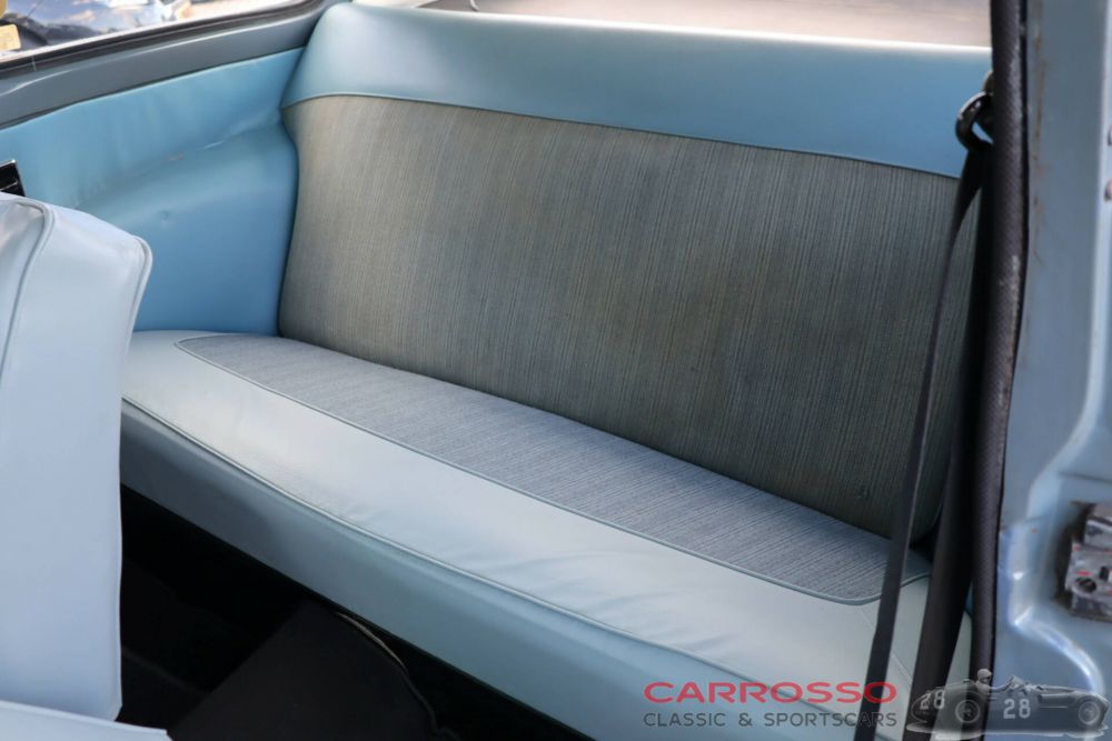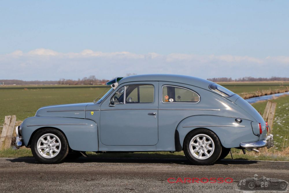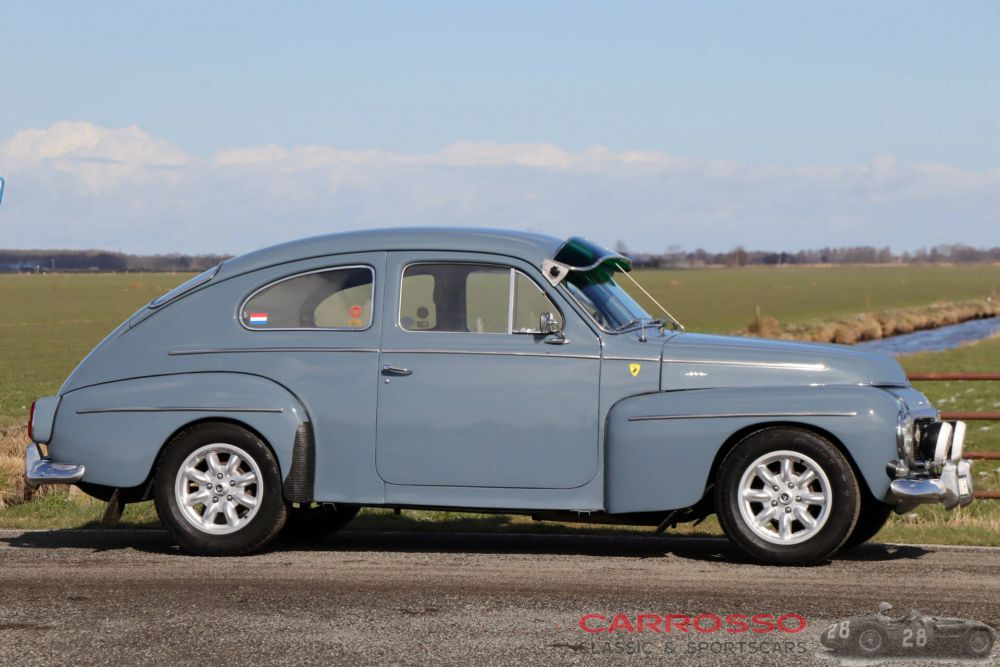 This PV544, is from 1961. It is finished in a neat 'Slate Blue' along with a light blue interior. Both the bodywork and the upholstery are in nice condition. Apart from this, it has extras such as the aforementioned 8-spoke Minilite rims, original Blaupunkt radio, sunroof, stainless steel bumpers kit and Cibie spotlights.