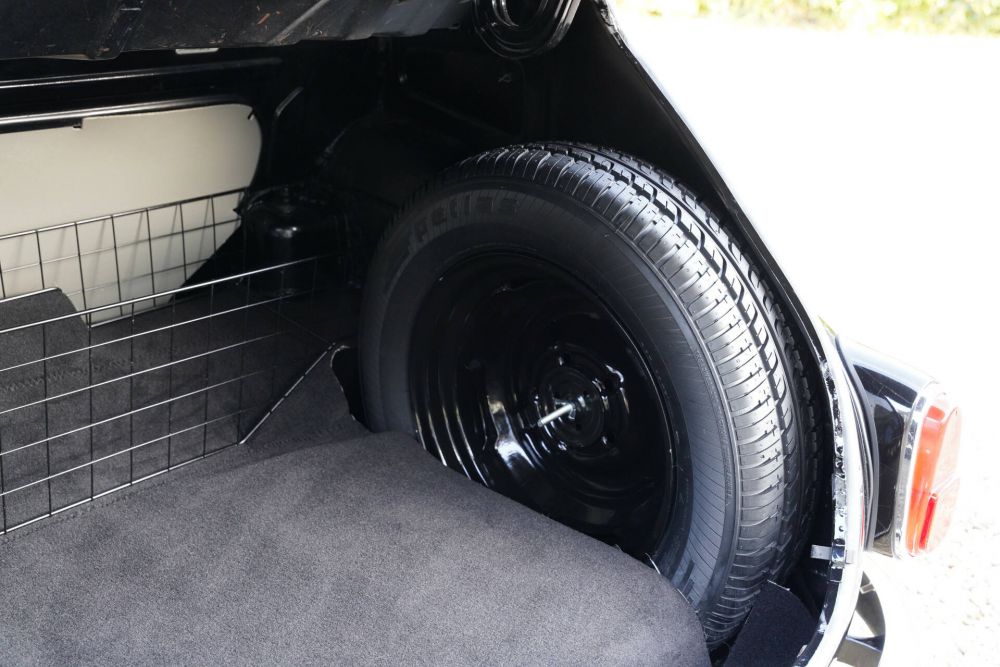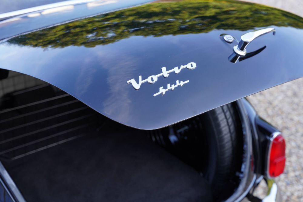 This Volvo PV544, finished in an elegant black paint, still radiates the robust elegance that is so characteristic of the early 1960s. The car has been meticulously restored, retaining as many original details as possible. From the iconic grille design to the subtle chrome accents, everything about this car exudes authenticity. The interior features gray fabric upholstery and matching floor mats, both in very tidy condition, contributing to the original feel of this classic Volvo.