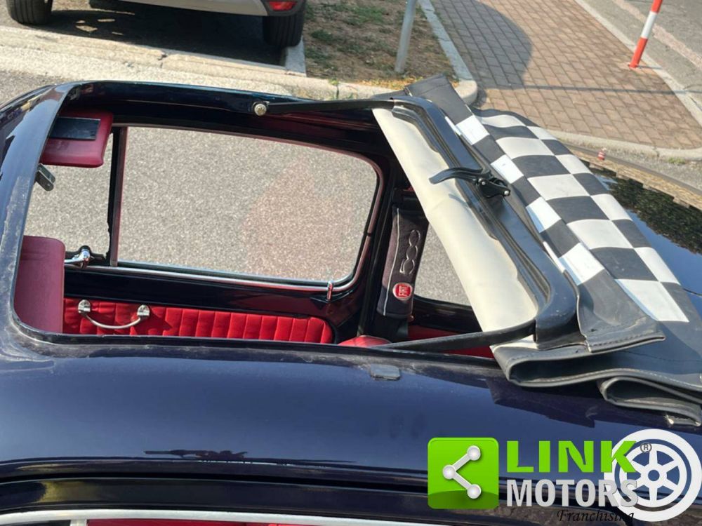 Anno immatricolazione:1972 Motore potenziato a 650 cc Accensione elettronica nuova generazione Pompa benzina elettrica Quinta marcia Impianto freni a disco anteriori Cerchi a raggi Borrani Pneumatici della Mini con fasce bianche Cofano motore rialzato Sedili anteriori e posteriori originali tenuti bene Moquette nuova Tunnel centrale con multitasche Fari anteriori luci bianche Commando tergicristallo con pulsante per spazzolata singola Doppio clacson originale ed Herby Strumentazione doppia marca Zero per gare di regolarita Cappottina nuova a scacchi Telo rosso copri auto Pedane per rialzo vettura, salva gomme Carica batteria I pezzi originali sostituiti si possono rendere Tenuta sempre garage Targhe e documenti originali Auto revisionata a settembre 2022 con scadenza settembre 2024