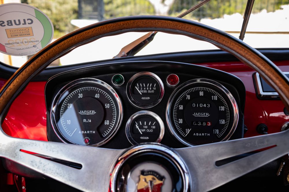 Aesthetically, all the original badges were installed, specific Abarth steel rims were fitted, and the interior was custom designed by a specialist saddler in Italy, modeled after an original Fusina racing bucket seat, installed exclusively for the driver. The soft top was also custom made, as were the carpets and rugs.
