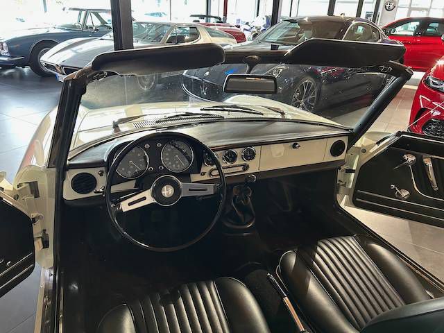 It was first registered in Perugia in November 1968 and changed hands the following April 1969. The owner drove the Alfa Spider until February 1987. From there, the Spider came to our customer in 2015, who had it extensively restored to an outstanding standard.