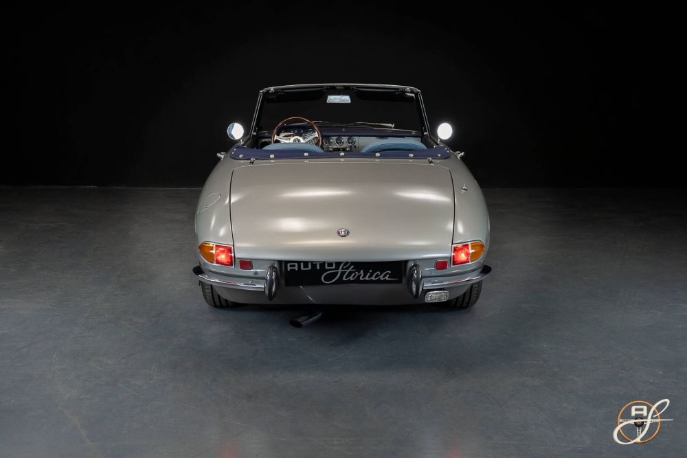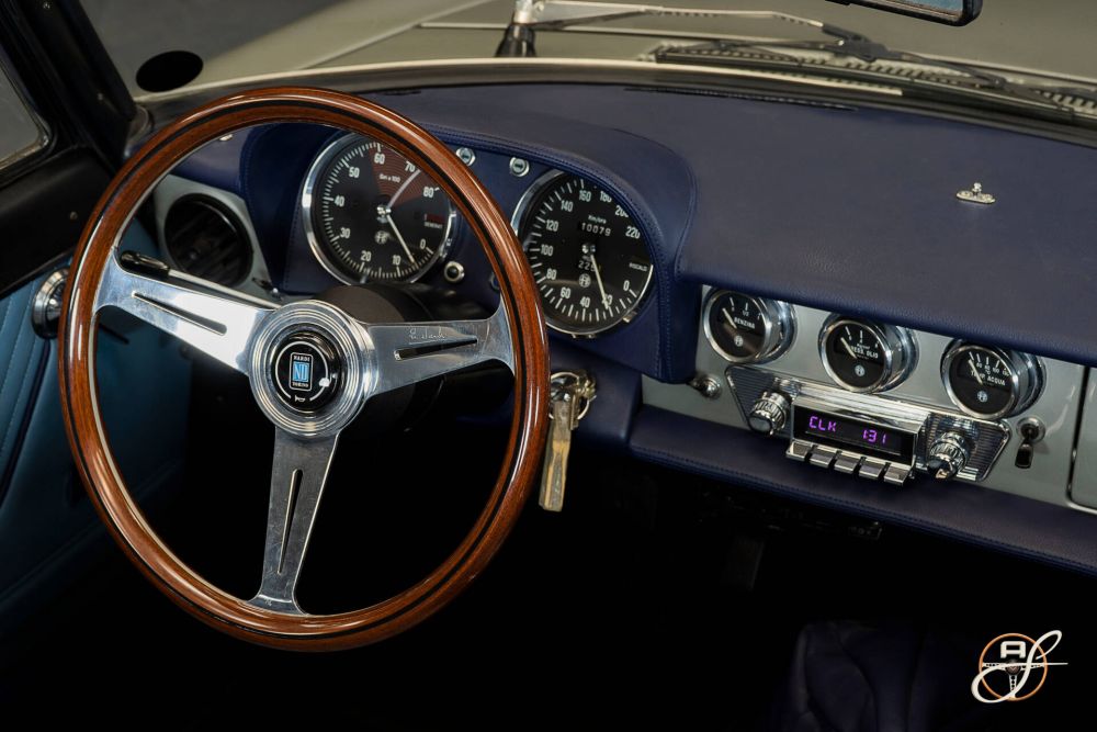 Our unit is not only fully restored, but also has improved and more reliable mechanics, delivering an immediate response to the accelerator thanks to its larger Webber carburettors.Its interior, finished in a striking dark blue color, matching the hood and the cabin cover, contrasts perfectly with the silver of its body. And the spoked wheels are the icing on such an exclusive cake.