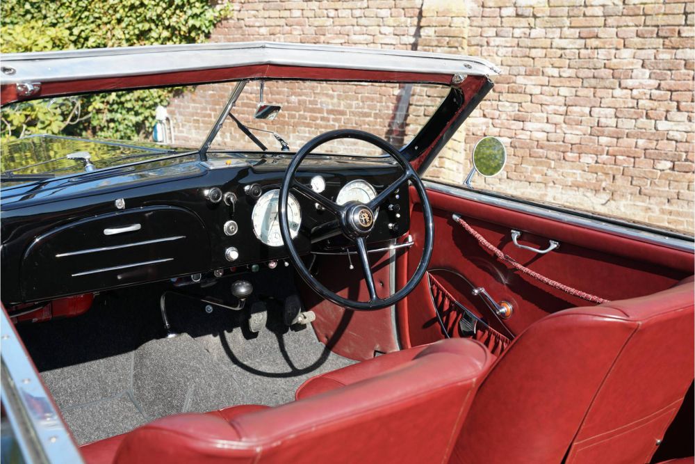 An immaculate and rare Alfa Romeo meticulously restored with all the period-correct parts and details. A distinguished prewar automobile that allows you to participate in the great events of the classic car world.