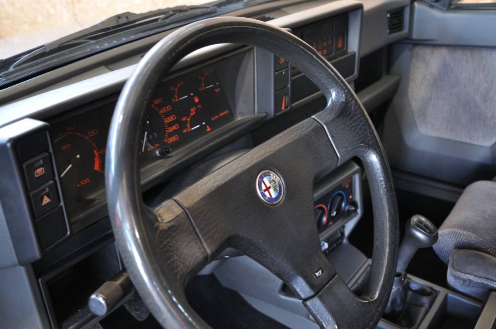 Alfa Romeo 75 2.0 Twin Spark, prima serie, 109 kw, NON catalitica, tipo 162B4. Grigio Medio Metallizzato AR776, cerchi in lega da 14 con pneumatici codice V, lavafari, servosterzo, quadro arancio e fanaleria posteriore arancio, 4 alzavetri elettrici.