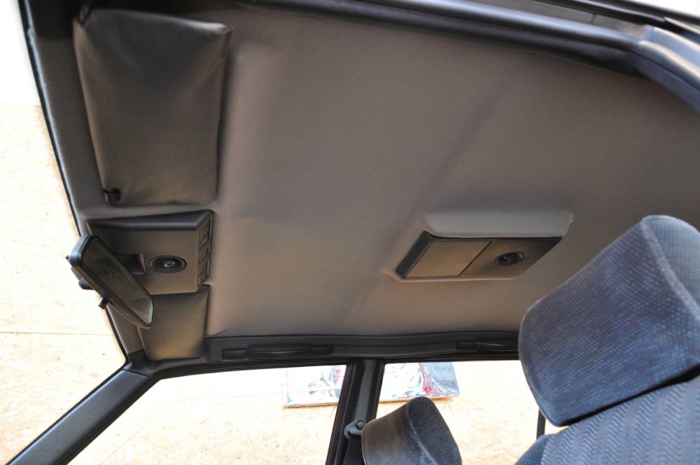 Vettura conservata con interni in ottime condizioni, cielo interno già ritappezzato, sellerie e imbottiture senza difetti, impianto stereo funzionante con radio Sony dell’epoca.