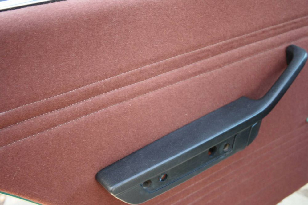 Questa Alfetta Sedan 1.8 è rifinita nell’accattivante tonalità verde pino, su interni rivestiti in tessuto marrone avana con inserti in legno.