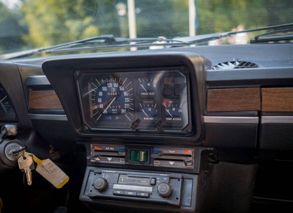 L'auto è molto ben eseguita e ha una bellissima similpelle blu originale con interni con motivo a rombi che è in ottime condizioni! L'Alfetta GT, come suggerisce il nome, è una vera Gran Turismo, un look sportivo dalle grandi prestazioni ma anche comodo per i lunghi viaggi di tutti i giorni. L'auto è quindi in ottime condizioni e si guida in modo sublime. Insomma, una grande auto con radici italiane