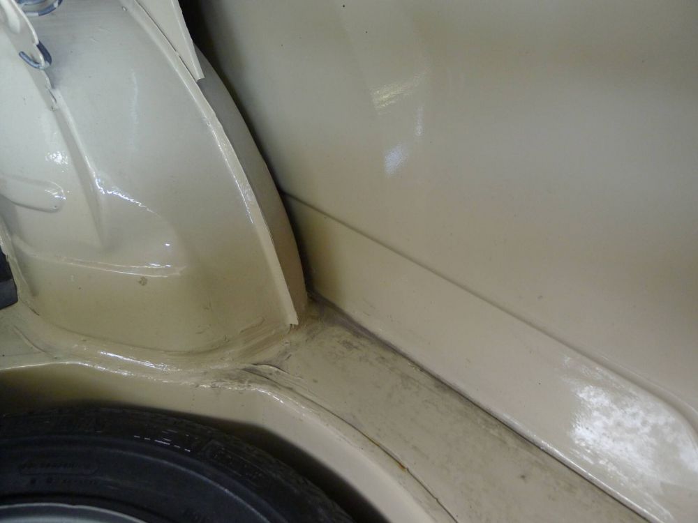 Die schöne Giulia hat eine ungeschweißte rostfreie Karosserie, nur an den beiden vorderen Türen und dem Heckdeckel gibt es drei winzige Bläschen, die vor Auslieferung noch fachgerecht beseitigt werden. Ansonsten sind die Sicken und Schweisspunkte so wie sie sein sollen, sogar die Aufnahmen für die Dichtungen unten an den Türen sind noch vorhanden.