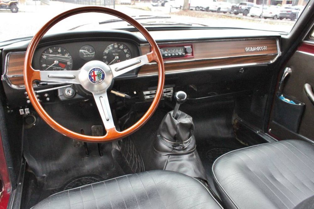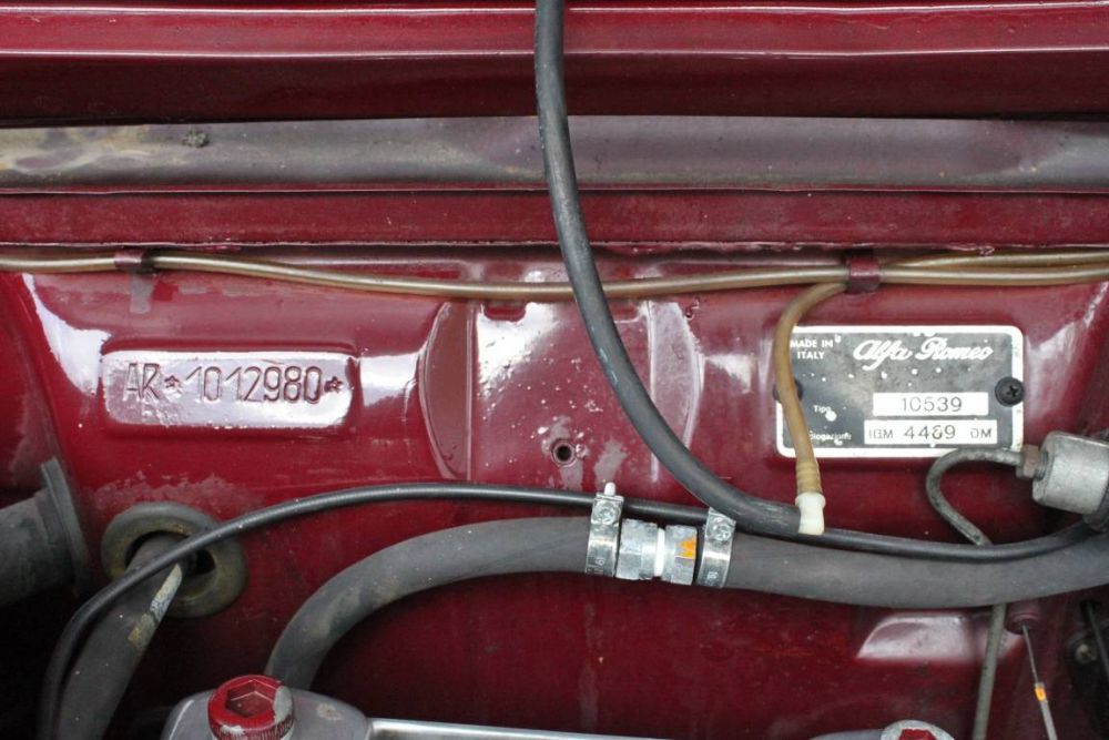 Die Giulia ist lediglich einmal lackiert worden  und verfügt noch über das sehr gepflegte originale Interieur. Unfallschäden sind nicht erkennbar, der KM Stand wurde mit 82.000 glaubhaft versichert und entspricht dem gepflegtem  Zustand.