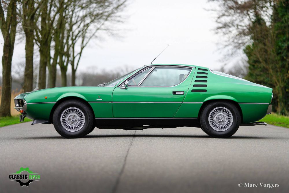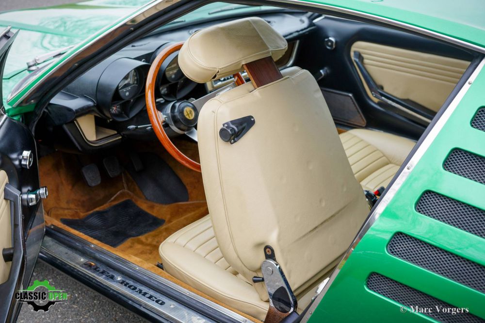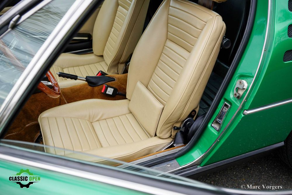 Alfa Romeo Montreal, year 1974. Colour green metallic (verde medio AR223) combined with a beige leather interior and cognac brown carpet. This magnificent Alfa Romeo Montreal comes from a discerning collector and the car is in an excellent condition! In the period 2017-2020 the car was improved to a high standard. The engine was fully overhauled and rebuilt, the SPICA fuel injection system was overhauled by the world’s best specialist in the USA, and the suspension was uprated with a Montreal handling kit developed by ex-Autodelta driver and suspension specialist Harvey-Bailey. Furthermore, the drive line and brakes were rebuilt, the Bosch fuel pumps were exchanged for Walbro pumps, and the exhaust was renewed. The body was restored in places and given a wonderful new paint system, the seats were newly upholstered with beige leather and the dashboard instruments were overhauled. The costs for all these improvements added up to about € 50.000. It is easy to understand that this alfa Romeo Montreal drives, handles, shifts and steers perfectly! The V8 sounds impressive, the 5-speed ZF gearbox shifts snappy and precise, and the driving experience is wonderfully balanced between sport and comfort. Oh, we love these cars! The Montreal was designed by Bertone as a concept car for the future (based on the alfa Romeo Tipo 33 racing car) and exhibited on the Canadian World Show in Montreal in 1967. In 1970 the concept materialized as the Alfa Romeo Montreal with a 200 bhp version of the Tipo 33 engine fitted in front. The Alfa Romeo Montreal is a superb Gran Turismo which is capable to drive long distances with high speeds, with ample comfort for the passengers, and enough space for their luggage. The Montreal accelerates from 0-100 km/h in 7,1 seconds and reaches a top speed of 220 km/h: super car performance for a GT in the 1970s! The Alfa Romeo Montreal is a superb driver car and good examples are highly sought after today. A rare car of which only 3925 examples were built. The presented Montreal is an excellent specimen for the serious Alfa Romeo enthusiast. We speak Dutch, English , German and French. Our cars can be delivered with Dutch, German or Belgium registration. We can assist with the French registration. Transport to your door is possible. We have our own workshop facility with 30 years experience with classic cars.