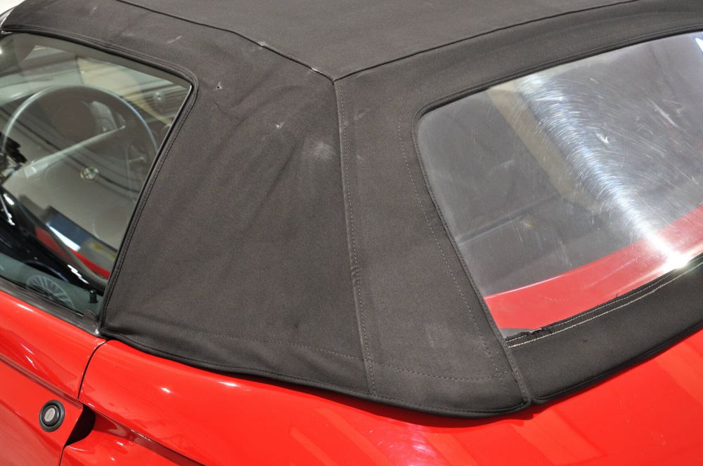 Alfa Romeo Spider 916 2.0i Twin Spark 16v prima serie, 150cv, prima immatricolazione 1996, Rosso Alfa con cerchi in lega originali e interni misto pelle/tessuto. Dotata di chiusura centralizzata con telecomando, capote manuale in ottime condizioni, manuali di bordo, doppie chiavi.