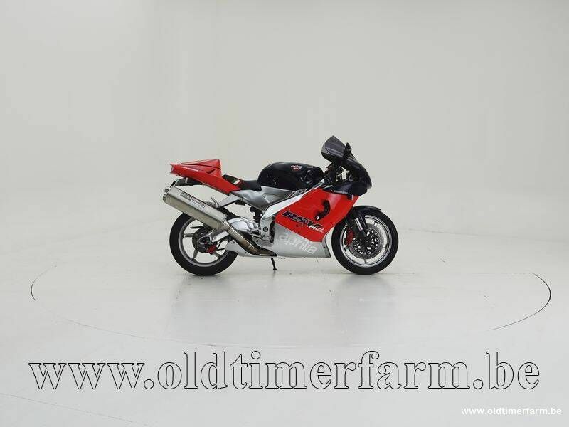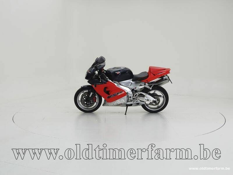 - Belgian registration (23/04/1999) - Steering damper - New battery - Duo seat available - New tires - Stainless steel brake lines - Original edition - V60° Rotax engine - New clutch - RSV Mille in the colors Aprilia used as a 'tribute' to Rossi's win in Moto-GP.