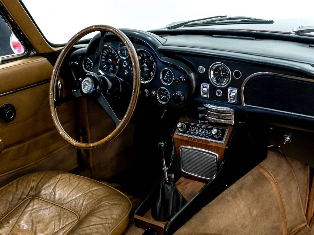 La nostra macchina: Il telaio con guida a sinistra numero '2517/L' abinata al cambion manuale a 5 raporti è stato venduto nuovo in Francia e immatricolato il 22 luglio 1968 dal suo primo proprietario a Eure-et-Loir. Successivamente Garage Mirabeau vendette l'Aston ad un collezionista gentiluomo, che la passò a suo figlio. La registrazione cambiò il 23 novembre 1977 e l'auto rimase di proprietà della famiglia per circa 40 anni, sotto la regolare manutenzione della Normandie Motors. Rifinita in rosso bordeaux metallizzato, l'Aston può essere descritta come in eccellenti condizioni originali con interni in pelle ben patinata con alcuni evidenti segni di buon utilizzo e vanta una radio Voxson d'epoca nella console centrale. Anche il cruscotto è stato mantenuto nelle stesse buone condizioni originali, completo di tutti i suoi strumenti e interruttori di comando. Dal punto di vista meccanico, l'auto ha beneficiato di un recente tagliando al motore con la sostituzione di tutti i materiali di consumo insieme a un nuovissimo kit di guarnizioni motore, insieme ad una  frizione nuova che la rendono un motore a 6 cilindri in linea che funziona perfettamente come si desiderava.