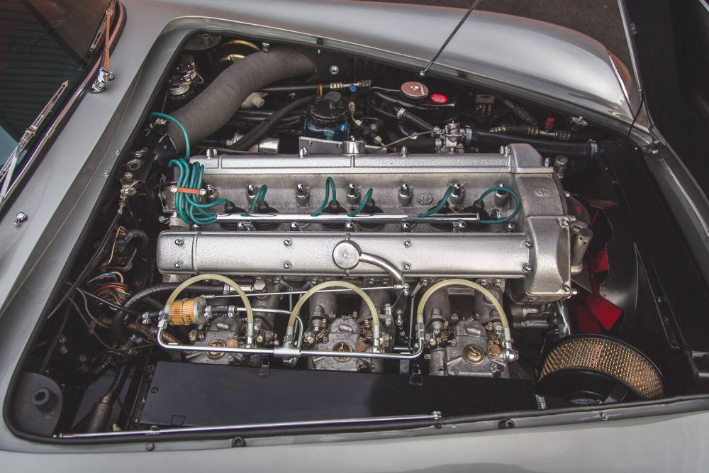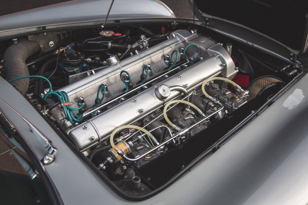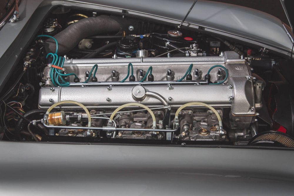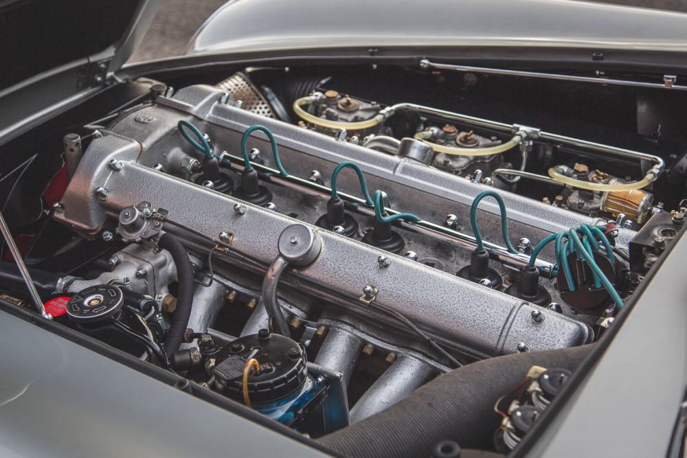 The original log book reveals that the vehicle changed hands in 1970 to a Joan Keep Penney who subsequently sold the car in 1973 to the current owner. Presented today in Silver Birch with Deep Red leather interior, the car was upgraded by Aston Engineering in 1993. These upgrades included the fitting of an original ZF 5-speed manual gearbox, combined with a Vantage conversion and air-conditioning (for use when touring in Italy.) This was carried out as part of an extensive restoration program at this time. In 2021, the vehicle received further recommissioning including re-treatment of the underside, rebuilding of the suspension, brakes and steering.