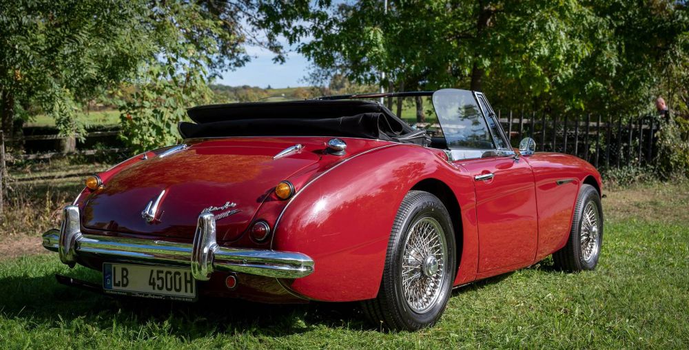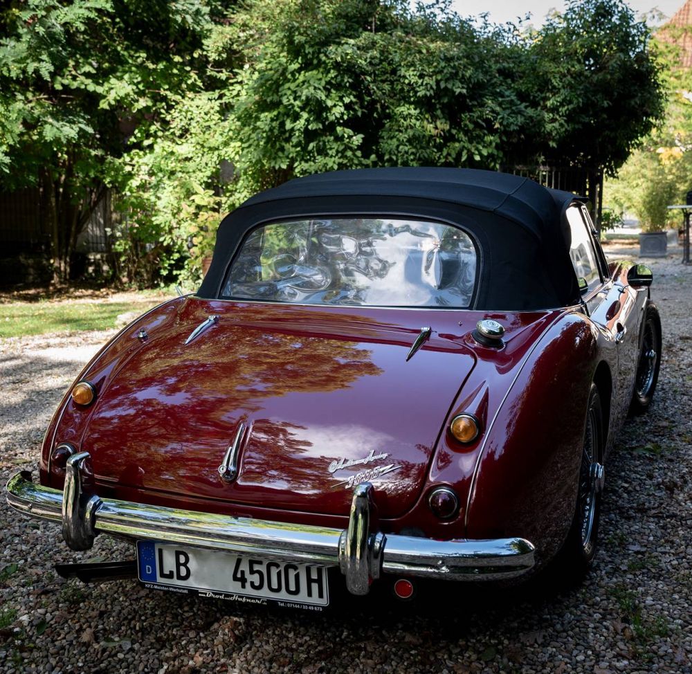 Das Verdeck des Austin Healey 3000 MK II BJ7 ist manuell zu bedienen und kann leicht heruntergeklappt werden, um das offene Fahrerlebnis zu genießen. Der Innenraum ist mit hochwertigen Materialien und bequemen Sitzen ausgestattet, die den Komfort auf langen Fahrten verbessern. Sowohl die Karosserie als auch das Fahrgestell sind in sehr gutem Zustand. Das Blech ist schön fest und die Passungen sind korrekt. Der Lack wurde damals komplett im Originalfarbton mit neu lackiert. Das Cabrioverdeck ist einfach zu bedienen und passt überall gut. Auch die verchromten und polierten Edelstahlteile sehen schön aus und sind in gutem Zustand. Das Auto ist mit schönen verchromten 72-Speichen-Felgen ausgestattet. Das Interieur des Healey wurde während der Restaurierung komplett neu mit Nappa-Leder bezogen und sieht immer noch schön aus. Der Innenraum ist mit schwarzen Teppichen ausgestattet. Das Armaturenbrett sieht toll aus und alle Instrumente und Bedienelemente funktionieren so, wie sie sollten.  Der Motor wurde überholt und die Technik befindet sich in einem guten Zustand. Der Motorraum sieht nicht nur schön aus, sondern läuft auch wunderbarund klingt dank der Edelstahl-Auspuffanlage fantastisch.  Kurz gesagt, ein wunderschöner Austin Healey 3000 MK II in einer wunderschönen Farbgebung und in perfektem technischen Zustand. Ein Auto, um mehrtägige Touren zu unternehmen oder um mit ihm zwischendurch eine Runde auf der Lieblingsstraßen zu drehen. Fahrspaß im schlüsselfertigen Austin Healey 3000 MK II. Der Verkauf erfolgt im Kundenauftrag. Bei uns können Sie auch leasen oder finanzieren! Unser Leasingpartner bietet maßgeschneiderte Lösungen für private und gewerbliche Kunden an. Qualität, Erfahrung und Transparenz sind unsere besondere Merkmale! Wir bedanken us für Ihr Interesse und freuen uns auf Ihre Kontaktaufnahme.