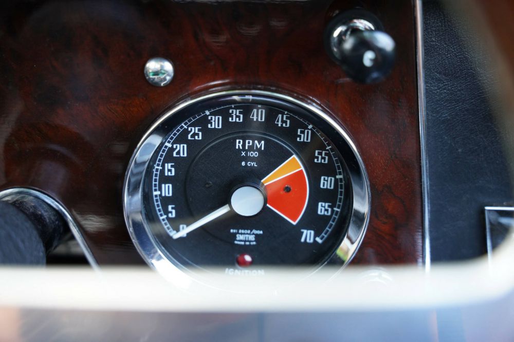 Surrounding you is the stylish black leather interior, with beautiful wooden dashboard panels and beautiful Smith instruments and rocker switches. The bucket seats are comfortable and keep you in place during sportier rides. The upholstery is beautiful without appearing 'too new', so the ambiance is completely right. Did we already mention that the black soft top is in optimal condition? Hereby! If the car is parked, there is also a black tonneau cover with the car to cover it neatly.