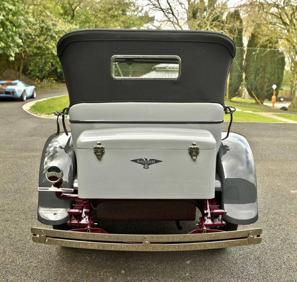 1922 Duesenberg Model A Phaeton by Millspaugh & Irish Chassis number: 798 Registration Number: Not currently registered. Engine Number 1111 Concours condition. This car when launched was a true standout. It was the very first serial production car in America to feature an inline-eight cylinder engine - dubbed Eight-in-a-Row in period advertising. The engine drew heavily from Duesenberg's racing experience, displacing 260 cubic inches (about 4.3 liters) and featuring an overhead camshaft, crossflow combustion chambers, detachable head, and a healthy 88 horsepower output. The chassis iss a conventional ladder frame with well-tuned suspension and four-wheel hydraulic brakes, the first production car to feature them. Brake drums were of finned alloy to aid in cooling, another lesson learned on the race track. Ultimately, history was not on the side of the Model A, while it is no doubt a brilliant automobile, it seems to have lived in the shadow of its more flamboyant Model J siblings. This stunning Duesenberg wears a stylish Sport Phaeton body by Millspaugh & Irish, the Indianapolis-based coachbuilder responsible for most Duesenberg A bodies. The cars history has been meticulously researched and restored in original specification, executed to the highest standard. The car, which has importantly received an ACD #1 Certification, is presented in a gorgeous tri-tone color scheme with a dove gray main body and dark gray fenders being subtly accented with a deep red chassis and wheels. It is an understated yet breathtaking look that suits the sporty coachwork very well. Body and paint quality are to concours levels with outstanding fit and finish. Detailing is understated, with the beautifully polished nickel radiator flanked by drum headlamps as correct, and topped with a winged Duesenberg-branded Moto-Meter. Dual side mounts feature upholstered covers and very cool period mirrors. Dual cowl lamps are affixed to the windscreen frame and a painted metal trunk sits out back. Bumpers and other bright trim are finished to a very high standard in keeping with the rest of the body. The cabin is trimmed in black leather which presents in beautiful, fresh condition showing little to no signs of use since the restoration. Door panels feature pockets with embossed flaps and the rear of the front seat is equipped with built-in wooden cabinets, presumably for storing a lap blanket for crisp morning drives. The Dash is finished in black lacquer as correct and a Duesenberg 8-branded Warner De Luxe instrument cluster sits front and center. The beautiful wooden steering wheel has been restored with a furniture grade finish. The folding top is trimmed in black canvas and remains taut, with a full set of side curtains included. Of course, the highlight of any Duesenberg is the engine, and this exquisite example does not disappoint. The overhead-cam straight eight is beautifully presented against the polished alloy firewall as original. The engine is painted in a light dove-gray, which is correct for these early Duesenbergs, as only the later cars got the signature bright green treatment. The cam cover is polished alloy, the wiring loom gorgeous nickel plated steel, and the ancillaries are all finished to concours quality standards, including the Robert Bosch horn on the firewall. The engine is impeccably presented, a gorgeous piece of engineering that also delivers excellent performance out on the road. This car is absolutley in as new condition & after restoration was shown at Pebble beach. It is simply pristine & ready to take part & have a chance of winning at any concours it is entered in. The engine starts instantly & is silent in operation yet also very powerful. The car as a whole drives beautifully & is streets ahead of other cars of the period, Rolls Royce included. It is currently on USA Papers as a temporary import.
