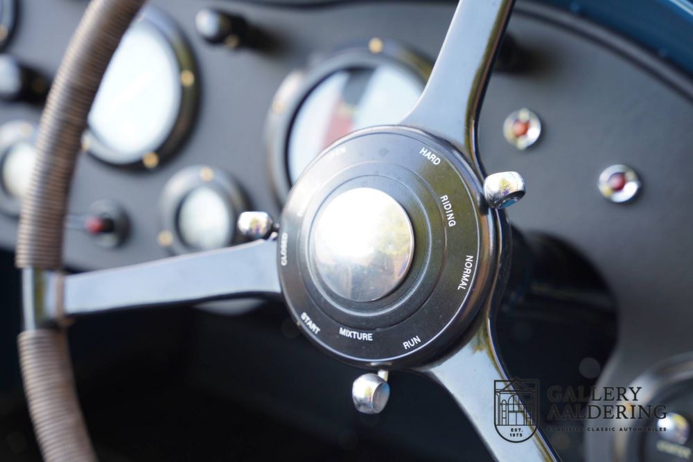 This wonderful creation was built by Racing Green Engineering. Bearing the official title of a B special 3/8 Racer it is a homage to the legendary 20’s and 30’s racers. Racing Green Engineering is world famous for building these fascinating type of racing cars. They have the same feel as the original, the same sensation of brute power with easier handling and maintenance. A perfect combination thus, ready for semi-daily use, partaking in rallies or just to cherish. Our advice is clear: drive it as much as possible!