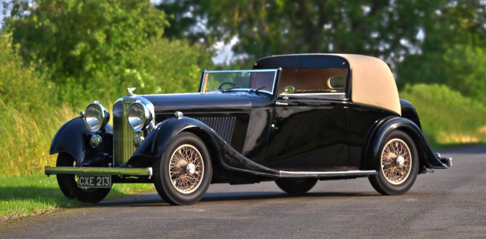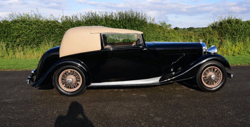 1936 Bentley Derby 4.25 Sedanca by Thrupp & Maberly Chassis number: B-36-GA Registration Number: CXE213 A stunningly beautiful car which wows onlookers wherever it is seen, this 4.25 Litre Derby Bentley Sedanca Coupe has fabulous and possibly unique aluminium Sedanca coachwork by Thrupp and Maberly. The subject of a massive restoration By Clanfield Coachbuilding, Fiennes Restoration & Marque Specialist Tony James and others, the car comes with a huge history file and piles of receipts for work done including a total body restoration (the coachwork was transferred to this chassis from B143CW c1978) including aluminium panel and ash frame replacement, a top quality interior re-trim in beautiful beige leather, total rewiring in the correct braided cable and all necessary mechanical work which was completed about 30 years ago. The restoration costed roughly £38,000 back in the days, which translates in c.a. £150,000 in modern days money. The car which has been well maintained, stored in a heated garage and sparingly used since its restoration still presents beautifully. Running and driving particularly well, the car has the ‘all of one piece’ solid rattle free feeling it would have had when it was almost new, and is the personification of the “Bentley silent Sports Car moniker. The cars interior is trimmed throughout in immaculate tan leather, the seats are very comfortable and the front seat adjustment allows it to accommodate the tallest drivers in comfort. The mahogany dashboard and door cappings, dashboard instruments and interior fittings are equally superb The opening sedanca roof is easy to operate and stows away quickly and easily. It and the roof covering in beige are again in like new order. The interior is spacious in the extreme & makes for very comfortable motoring for the rear passengers who are cosseted by the solid sedanca roof to the rear. Exterior paint is Masons black cellulose & in very good order ,with the deep gloss only found with cellulose paint. Beige wire wheels are installed all round shod with 4 good tyres and an unused spare. To sum up this is a great car fitted with rare desirable original coachwork & is ready for immediate extended use.It is a pleasure to drive, looks beautiful from every angle and is the centre of attention wherever it goes.