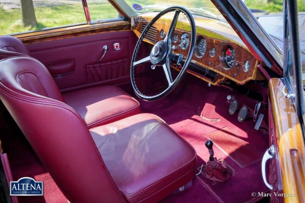 Bentley R Type Continental by Racing Green Engineering, year chassis 1953. Chassis (VIN) number: B40UM, engine number: B123U, body number 00052. Colour black combined with a burgundy red leather interior trimmed with dark red wool carpet. This majestic Bentley R Type Continental was completed by Racing Green Engineering (Wales, UK) in 2015. This Bentley R Type Continental recreation was based on a 1953 Bentley R-type chassis and mechanical components. The chassis, engine, gearbox and all the other original components were fully restored and overhauled to the highest standards and finished to perfection. The aluminium bodywork was handcrafted by the craftsmen of Racing Green Engineering following the example of the original shape of the R Type Continental design by H.J. Mulliner. The original R Type Continental was presented in 1952 and produced until 1955. Only 208 examples were originally built by Bentley. The R Type Continental redefined the post war Bentley and it is one of the most impressive motorcars ever conceived. The Continental was built with a strict target weight of 1750kg: in 1950 no tyre existed which could sustain a heavier weight at 115mph+. The R Type Continental was highly praised by Autocar Magazine: “Whatever memorable motoring experiences one may have had, this was something different…this Bentley is a modern magic carpet which annihilates great distances and delivers the occupants well-nigh as fresh as when they started.” This Bentley R Type Continental recreation built by Racing Green Engineering has driven only 2329 kilometres since its completion, and the car is still in a like new concours condition! The 4566 cc R Type straight six engine runs smoothly and powerfully, and the fully synchronized R Type four speed gearbox shifts perfectly. The interior is upholstered and finished using the finest leather, wool, and walnut wood. The wood dashboard and the other wood interior details are works of art. This automobile has known one proud owner since its completion. This is your chance to buy a fantastic recreation of the most desirable vintage post war Bentley ever conceived. This exclusive automobile comes with original Bentley documents, and a restoration (photo) report.