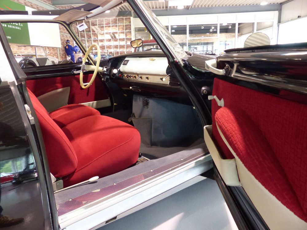 Die DS-typischen Velourssitze wurden neu aufgepolstert und frisch bezogen. Die Sitzgestelle sind revidiert, wie auch der Verdeckverschluss und die Fensterheber. Die Innen-Verkleidungen wurden anlässlich der Restauration vollständig erneuert. Die Teppichlandschaft in edlem und beruhigendem grau ist neu und entspricht dem Original.
