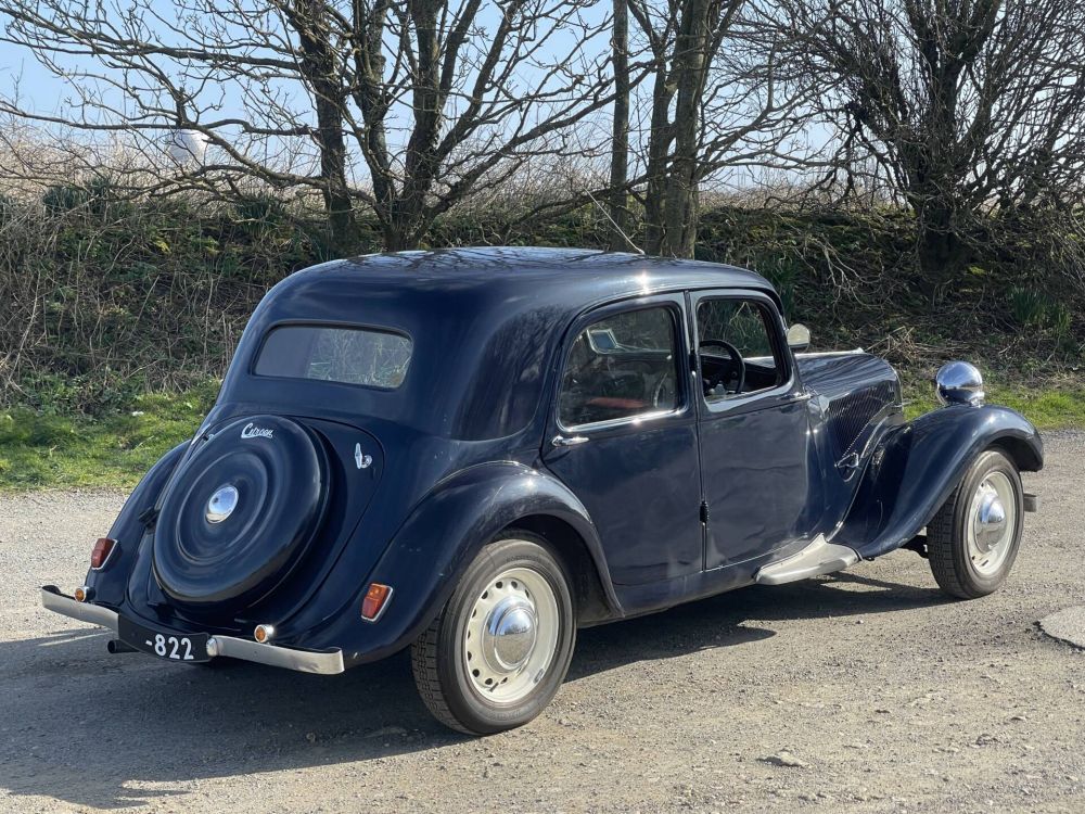 The Light Fifteen model offered here has the smallest chassis in the Fifteen range (the Big and Familiale models having longer and wider bodies). It was first registered new in the UK in October 1947. We have some early UK logbooks which show that it moved through the hands of a few owners in different parts of the country, until its acquisition by a Jersey-based enthusiast back in 1985. Immediately prior to this it had undergone some considerable professional restoration work, which included an engine rebuild (new pistons, liners, white metal bearings), a brake overhaul, new shock absorbers and bodywork attention which included a full re-spray in maroon and black. Unsurprisingly, given the long-term ownership of its current custodian, it has received further work over and above regular maintenance, which includes a full repaint into its current dark blue paint scheme some years ago and a gearbox refurbishment in July 2023.