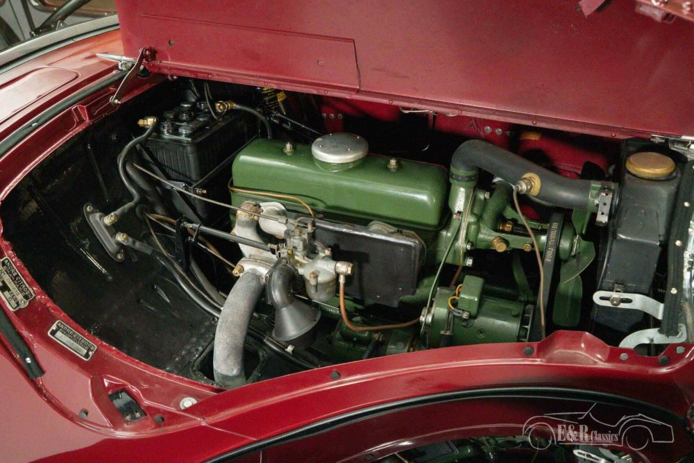 Het exterieur van deze Traction Avant is een lust voor het oog. De diep rode lak gecombineerd met zwarte spatborden en wielen zorgt voor een elegante uitstraling. Dit model heeft enkele zeldzame kenmerken, zoals koplampsteunen zonder stelgaten, een reservewieldeksel uit drie delen en bumpersteunen met slechts één bout in plaats van twee. De authentieke benzinetank met twee vuldoppen en het nummerbord met verlichting (Plaque de Police) onderstrepen de originele details. Binnenin straalt het interieur pure klasse uit, met twee dashboardkastjes, een originele centrale instrumentatie en een speciaal vervaardigde binnenspiegel. Bovendien is het uitzetkompas voor het raam nog origineel, een detail dat zelden wordt teruggevonden. De hoogwaardige bekleding, geweven volgens de traditionele Franse methode, zorgt voor een perfect samenspel met het exterieur.