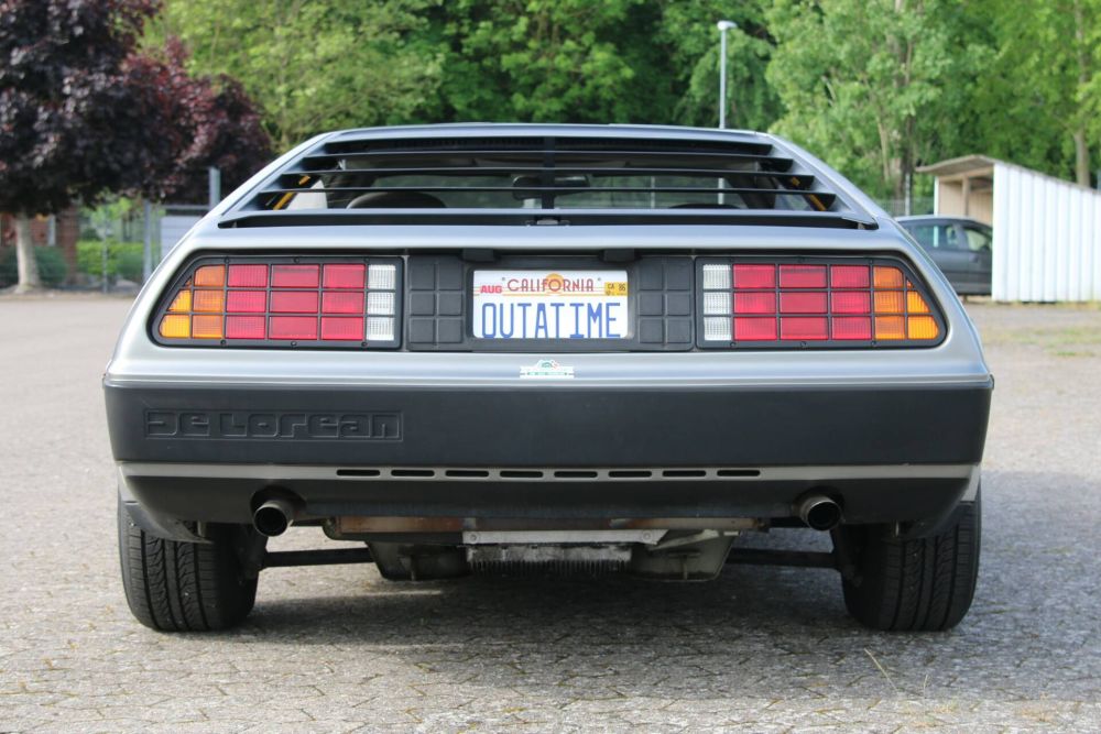 Iconic DMC DeLorean with 5695 original miles on the odometer. The car has the original and rare 5-speed manual transmission and a 2.85-liter V6 engine producing 130 hp from the factory. The 5-speed manual transmission is rare as most DeLoreans had a 3-speed automatic. The car still has many original equipment and accessories, including the original Goodyear tires, original tire dust caps, original Stainless Steel Care Kit, and the original manuals. The car's California license plate, OUTATIME, which refers to the 1985 blockbuster Back to the Future starring Michael J. Fox, is included in the sale.