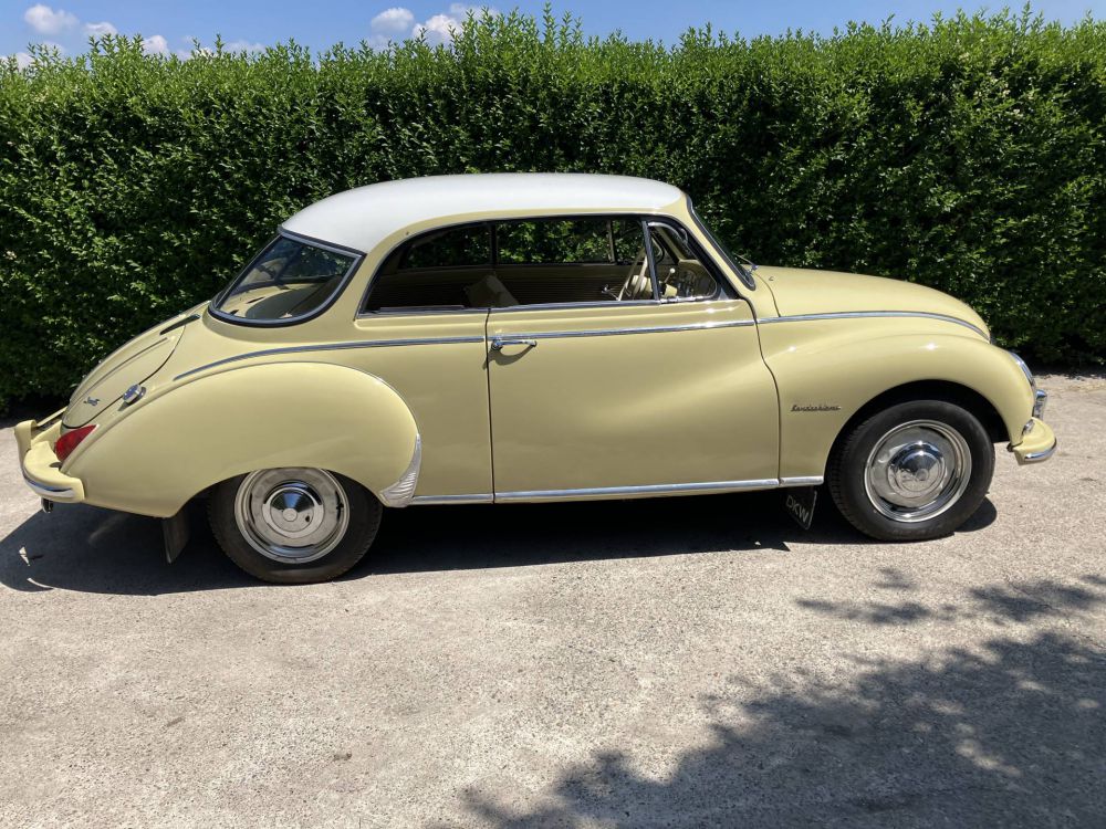 Wunderschöne DKW 3=6 Sonderklasse F94 Luxus-Coupé aus den salzfreien Nord-Schweden. Auf einen rostfreien Basis wurde diesen DKW liebevoll restauriert und erhielt dabei seine originale Innenausstattung.Die lackierung wurde vom Profi gemacht und sieht sehr schön aus. Fahren,Bremsen,Schalten und lenken tut der DKW wie es gehört. TÜV, H-Kenzeichen und Probefahrt sind möglich.Standort ist Mariënvelde,Holland,unweit von der Deutsche Grenze bei Bocholt.
