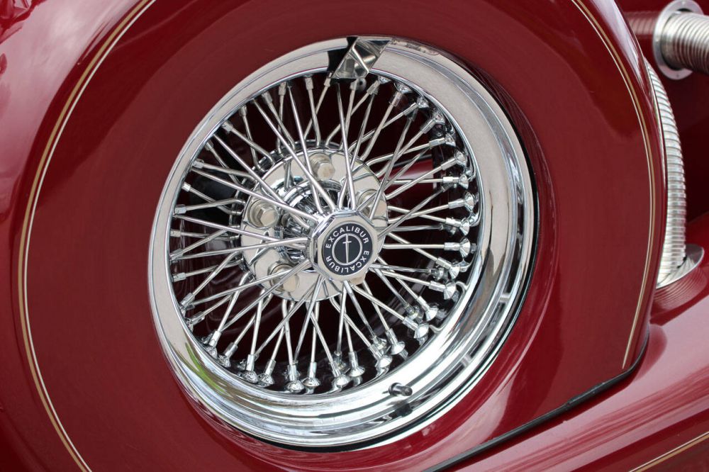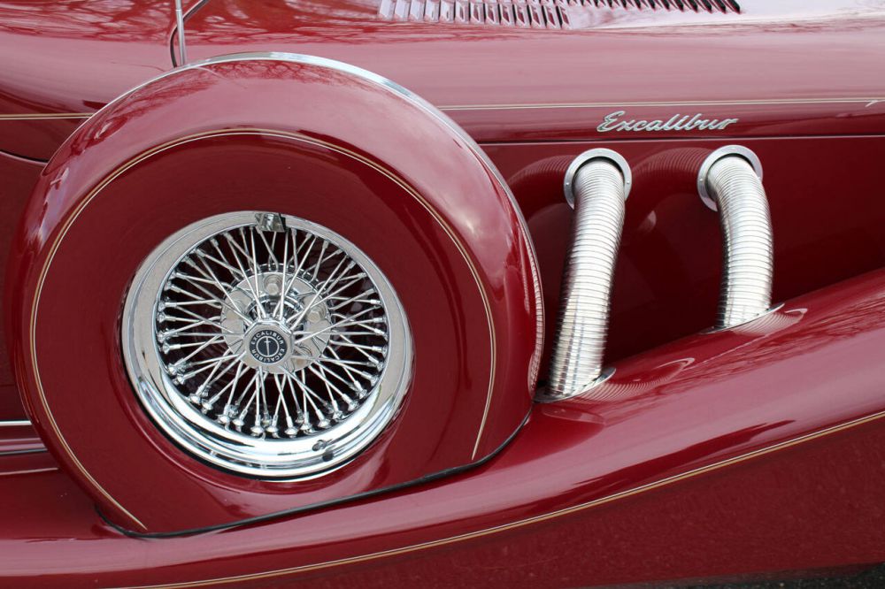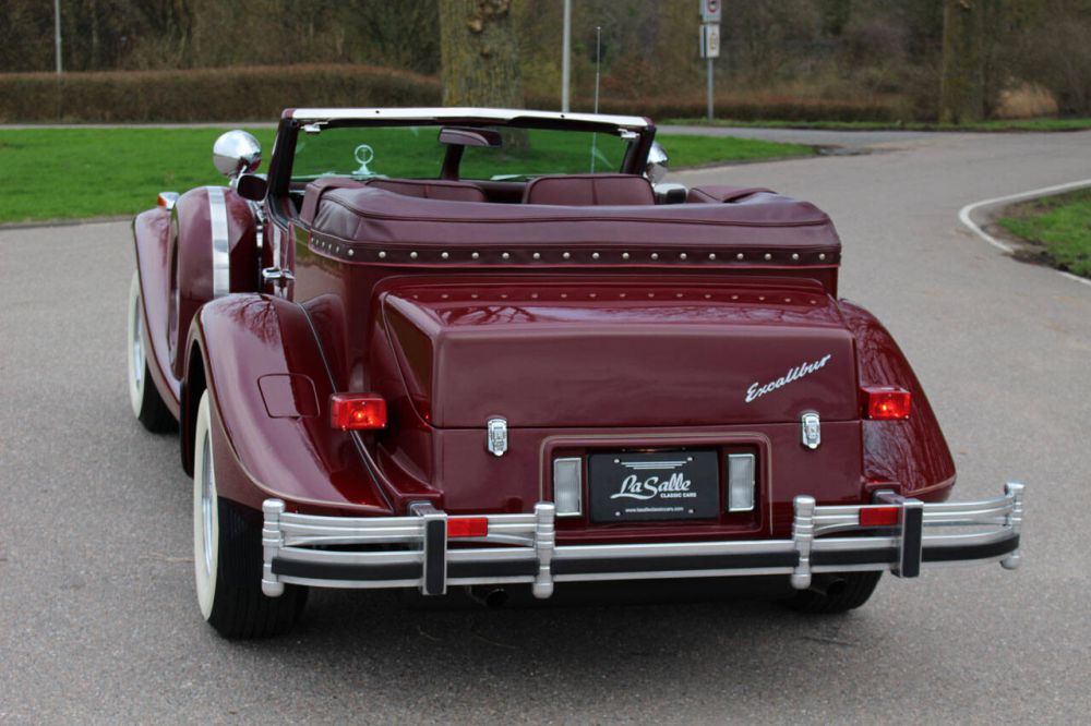 Well-known designer Brook Stevens is the founder of the Excalibur brand. In the mid-1960s, Excalibur released unique, hand-built Roadsters inspired by the legendary Mercedes SSKs. In the 1980s, retro cars were very fashionable and several small car manufacturers came up with interesting models, but the quality was usually not high. Unlike the Excalibur. They produced their own purpose-built frame, all in Milwaukee, Wisconsin. The bodywork was a combination of polyester and aluminum and of high quality and finish. The new price in 1983 was no less than $56,000! For comparison, a Chevrolet Caprice was under $10,000. It was therefore a toy for the rich and famous, often seen in places such as Hollywood, but also in Europe at places such as Cannes and Monaco.
