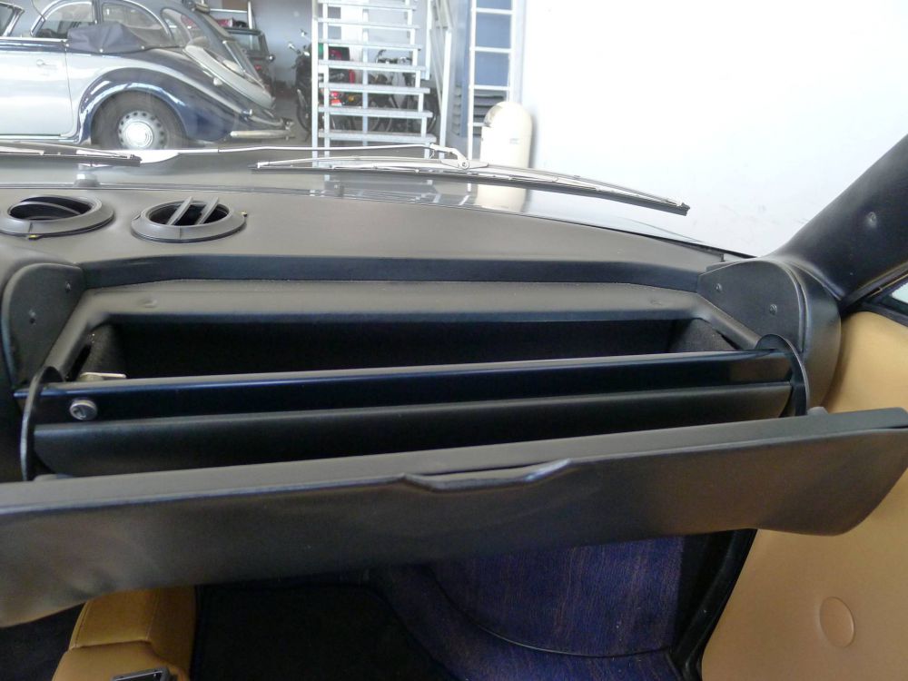Die Innenausstattung in beigem Leder ist ebenso wie die Teppiche im Innen- und Kofferraum noch original und in ordentlichem Zustand.