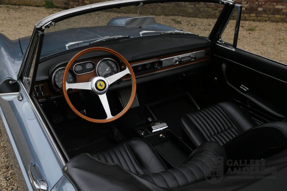 The first owner didn't drive his car much, in 1992, when the car was owned by the second owner for a few years, the car had only driven 30,670 miles. We know this because the owner serviced his car at a very well-known address, of which a lot of documentation is available. A few years later, the then owner decided to treat the 275 GTS to a restoration by a well-known and appreciated specialist. After a very thorough approach, the car was given a new coat of paint in the original color, Azzurro Metallizzato. Of course, the interior was not left behind and its restoration was completed with new leather in the original color.