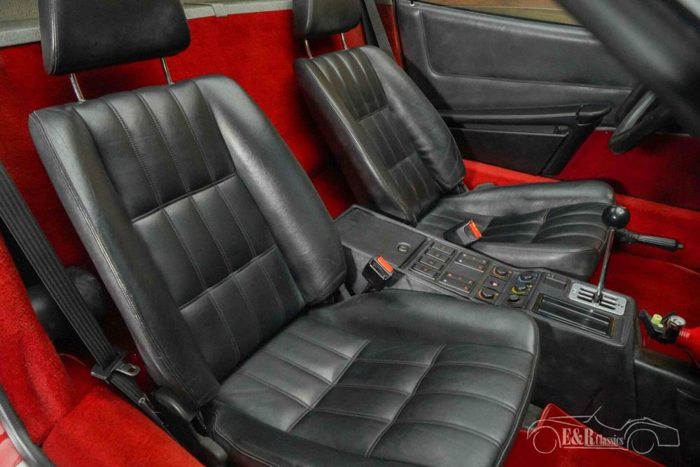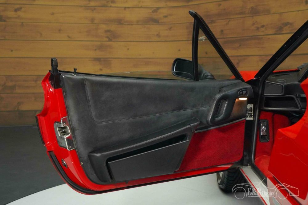 From the outside, the 328 GTS shines in the timeless Rosso Corsa paintwork, perfectly combined with a black removable targa roof and a leather-covered rear spoiler. The original rims and aluminum door sills underline its sporty character. The interior exudes Italian class with a black 'Nero' leather interior, contrasting with the deep red carpet. Details such as Veglia counters, a Momo sports steering wheel, the original Pioneer radio, and electrically operated windows and mirrors complete the whole. The sun-resistant windshield provides extra comfort on sunny rides.