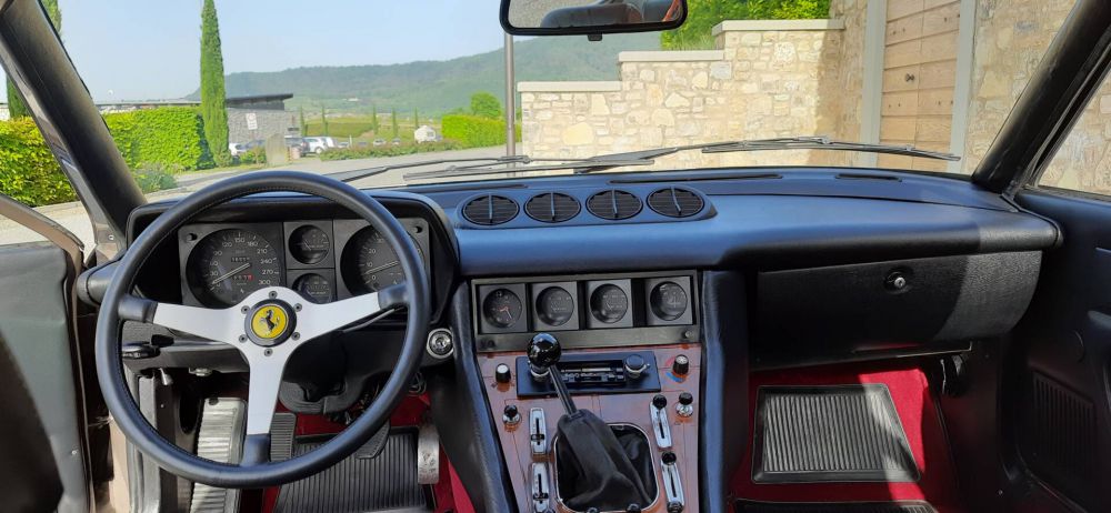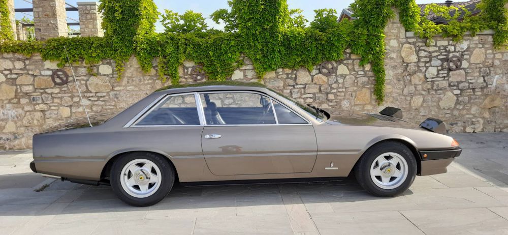 La Ferrari 365 GT4 2+2 è stata una vettura prodotta dal 1972 al 1976 in soli 521 esemplari di cui 3 prototipi e 109 con la guida a destra. Vettura voluta da Enzo Ferrari che vedeva in questo modello “l’ammiraglia” sportiva (quindi a due porte) del Cavallino Rampante. La 365 GT4 è il gran turismo in abito da sera. Una Ferrari con un classicismo elegante il cui magnetismo colpisce soltanto gli intenditori più esperti: infatti ha questo dono raro e prezioso di lasciare indifferenti tutti quelli che distinguono la bellezza soltanto quando questa fa sfogo con provocazione. Oltre ad Enzo Ferrari, che verso la fine della sua vita adoperava una 365 GT4 azzurra per i suoi viaggi personali, furono vari i personaggi appassionati del modello. Tra questi citiamo il Principe Bernardo d’Olanda (che ne ebbe due tra le quali la telaio 17129), Etienne Aigner, uomo d’affari e sponsor di Clay Regazzoni (telaio 17405), Mohammad Reza Pahlavi, Shah d’Iran, e Mick Jagger, cantante dei Rolling Stones. La vettura proposta è la telaio 17441 prodotta nel 1973. Il primo proprietario è stato un noto industriale Veneto produttore di elettrodomestici che si definivano nella pubblicità “indistruttibili” . Versione Full optional per il modello, con alzacristalli elettrici, ed aria condizionata.  Il servosterzo era invece di serie. Il cambio è manuale. Il motore è stato rifatto nuovo, con fatture e foto documentative, ed è in rodaggio. Montati anche 5 pneumatici nuovi.  Su consiglio del meccanico di Niky Lauda. Ermanno Cuoghi, è stato anche sostituito l’intero impianto di scarico con uno inox proveniente direttamente dall’Inghilterra . La vettura è stata sottoposta ad un piccolo restauro conservativo che ha interessato l’interno in pelle che è stato risanato e portato alle condizioni originali. I tappeti, fondo in moquette sono stati rifatti a nuovo e tutti i dettagli dell’interno e vano motore sono stati curati come anche il vano sottoscocca . Infine la carrozzeria è stata finemente lucidata e protetta con nanotecnologia 9h. Vettura che ha bisogno di essere utilizzata per viaggi di “respiro” ove il 12 cilindri con 340 CV a 6200 giri al minuto, possa “ruggire” come si conviene.