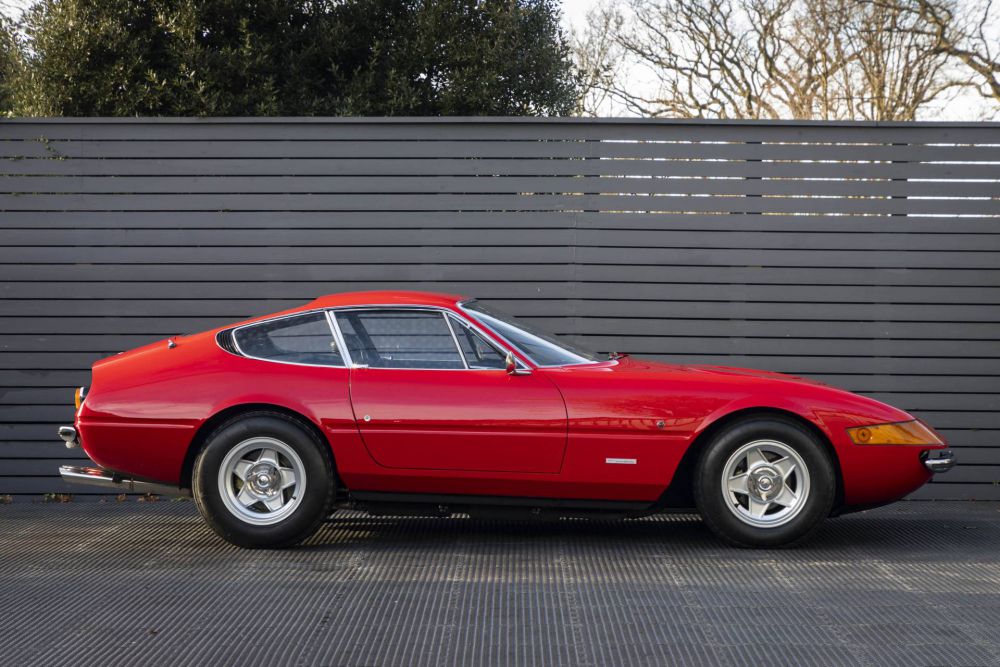 Hexagon Classics are delighted to offer this significant Ferrari 365/4 Daytona, which has enjoyed a fully documented history and has recently been inspected and passed for Ferrari Classiche certification.     Our car was purchased new from Maranello Concessionaires Ltd in July 1972 for £10,072 by D. Dobbie denizen of Bonhard House, Perth, who then sold the Daytona to rock music legend Sir Elton John.  Sir Elton enjoyed owning the Daytona for two years before re-selling it. The car’s history files stretch back from the original new car purchase order right through to recent Ferrari maintenance. MOT certificates from 1977 onwards accompany the bulging history files. Thoroughbred and Classics Cars magazine wrote about the car, “Has this dream come true in, say 1972, I’d have been the proud owner of a Ferrari 365 GTB/4. With its front-mounted V12 engine powering the rear wheels and clothed in suitably stunning steel, the Daytona is to many the ultimate Ferrari GT, the final incarnation of a bloodline that stretched back via the 275 and 250 to Enzo Ferrari’s first road cars.”   They continued, “It’s diabolically beautiful, with stupefying proportions, that pin down the aesthetic senses, only for its deft and subtle detailing to coax them back… You’re left in no doubt that this was Ferrari’s ultimate expression of front-engined potency and performance. It has all the classic cues. The bonnet stretches endlessly with the cabin crouching behind it, submitting to the airstream with carefree bravado and, like a great work of art, the Daytona’s apparent simplicity is deceptive. In short, the Daytona is a masterpiece of the stylist’s art, and it’s beautifully built too.” Having benefitted from significant recent expenditure, and Ferrari Classiche inspection, this wonderful Daytona is all ready to be enjoyed. Available to view at our London showroom.
