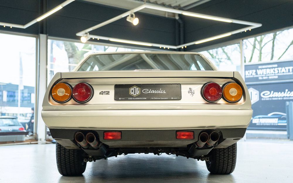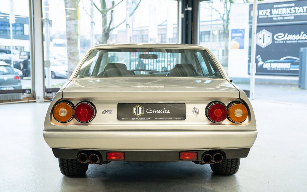 Im Jahre 1985 löste der Ferrari 412 seinen Vorgänger, den 400i ab. Beide Modelle des italienischen Sportwagenherstellers sind vergleichsweise wenig verbreitet und sind vor allem optisch sehr dezent gehalten. 412 und 400 sehen für Leihe beinahe identisch aus, jedoch gibt es beim 412 einige optische Unterschiede. Die von Pininfarina entworfene Karosserie des Ferrari 412 kennzeichnet im Vergleich zum 400i ein höherer Kofferraum sowie geänderte Leichtmetallräder. Die Blinker vorn wurden einheitlich weiß ausgeführt sowie die Stoßstangen in Wagenfarbe lackiert. Die 4,9 Liter Hubraum sind auf 12 Zylinder verteilt und erschaffen in Kombination mit einer Bosch KE-Jetronic Zündung ganze 340 PS, die das Luxuscoupe auf bis zu 250 km/h bringen. Damit das Gesamtpaket eines eher gemütlichen Ferrari Modell Sinn ergibt, gab es den 412 nur optional als Handschalter. Zudem wurde erstmals in der Firmengeschichte ein ABS in einem Ferrari verbaut.
