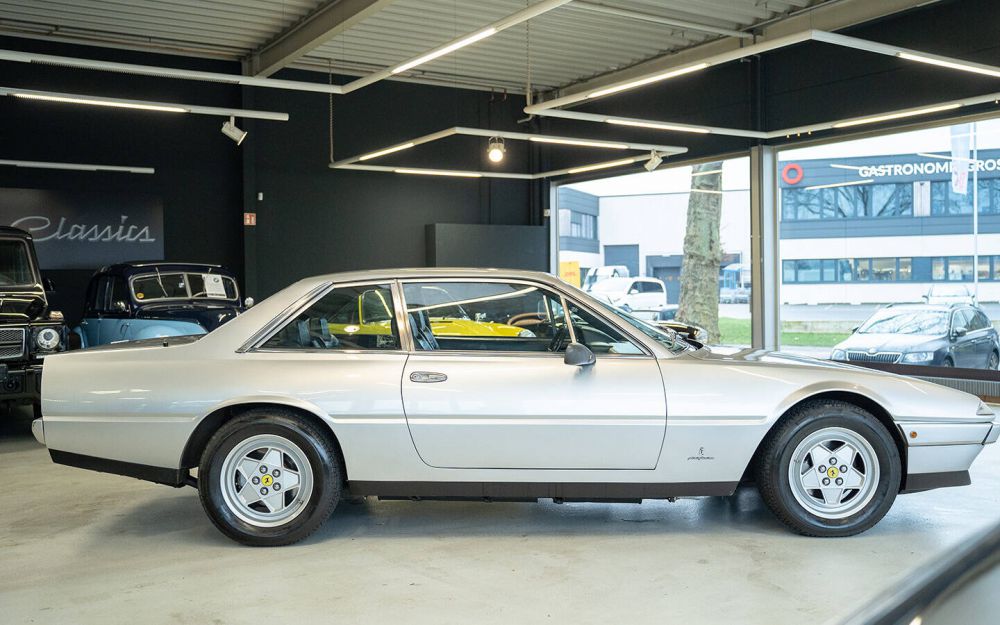 Dieser in „argento silber“ lackierte Ferrari 412 wurde am 14.01.1988 das erste Mal zugelassen. Seit dem 04.04.2012 ist der aktuelle Besitzer im Fahrzeugschein vermerkt. Dieser ist gleichzeitig einer unserer Stammkunden aus Luxemburg und bietet das Fahrzeug nun zum Kauf an. An dem Fahrzeug wurden im Jahre 2022 und 2023 einige technische Reparaturen und Erneuerungen vorgenommen. Die Kosten dieser technischen Teilrestaurierung belaufen sich auf über 50.000 €. Die 13 Seiten lange Rechnung dazu liegt uns selbstverständlich vor.