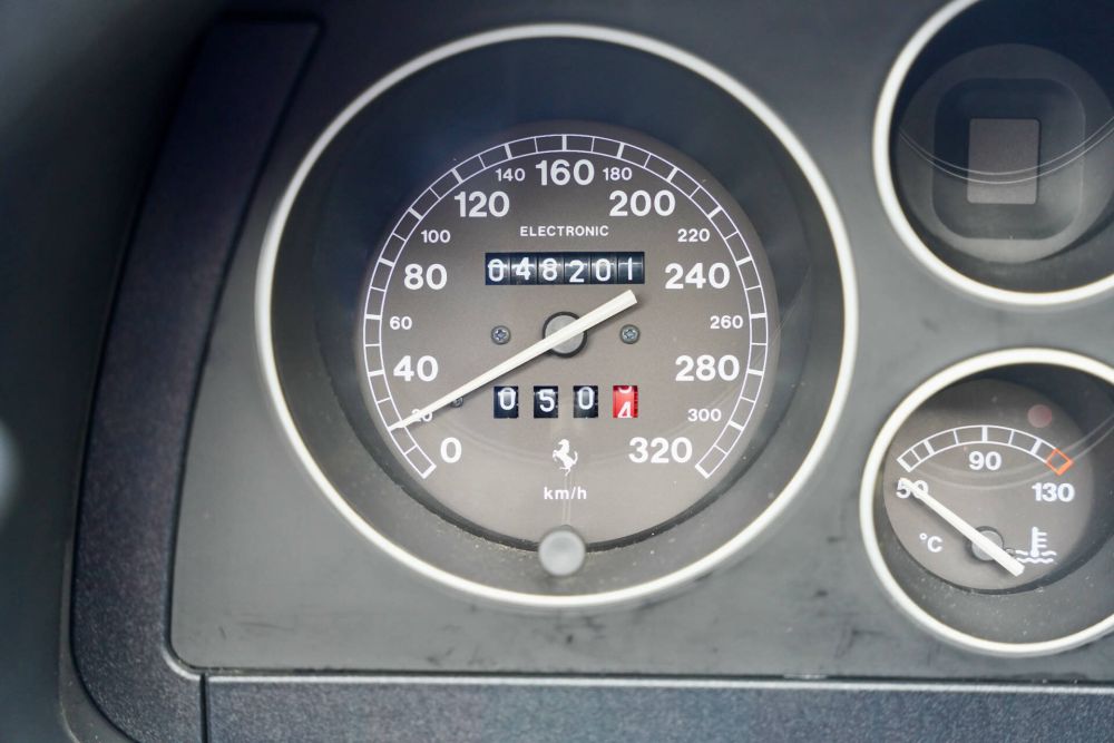 Step inside, and you’ll be transported to an era of pure, unfiltered Ferrari driving. The interior is very well-preserved. The steering wheel shows minimal signs of use, the seats remain in fantastic shape, and the dashboard and instruments look practically brand new. Even the carpets and pedals reflect the meticulous attention given to this car.