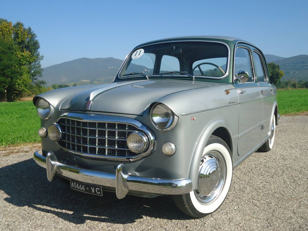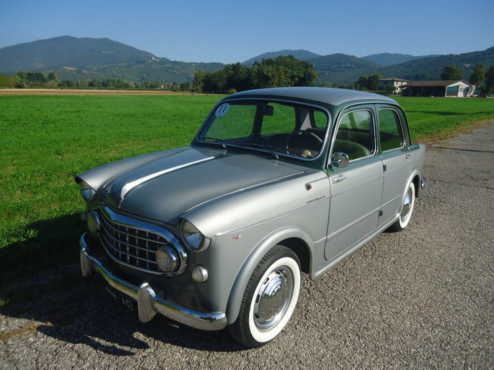 Fiat 1100 103 Elite Vignale  1956 Vignale è stato uno tra i più importanti carrozzieri italiani. Definito “l’uomo che scolpiva l’acciaio”, il suo successo si deve molto al designer Michelotti che collaborò con lui fino al 1961. Apprezzato dalla clientela Vip che si faceva realizzare esemplari unici di Ferrari, agli inizi degli anni ’50, Vignale, allargò lo sguardo verso le vetture più note al pubblico per realizzare versioni speciali ed uniche nello stile “Vignale”.  Fu così che dopo l’uscita di una delle vetture, destinate al ceto medio, la Nuova Fiat 1100 103, anche Vignale propose sull’allestimento berlina, la sua proposta, che non poteva chiamarsi altro se non “Elite”, che ben andava ad identificare il target della clientela a cui questa vettura era destinata.  Disegnata quindi sempre dall’inesauribile Michelotti, che riconosciamo per la coda posteriore particolare (che non è quella del TV, per intenderci), la vettura ha alcune caratteristiche uniche quali: Il mascherone anteriore, importante, con incorporati due fari fendinebbia, che ci riporta a vetture più prestigiose (Ferrari 212 Inter Vignale ndr).. La coda posteriore con una onda sopra la linea delle pinne posteriori che ricorda le finiture di alcune vetture americane.  Le finiture in alluminio laterali specifiche per la vettura.  Il lunotto posteriore di maggiori dimensioni. Nel vano baule troviamo la ruota di scorta sotto il tappeto ed il bocchettone del carburante non più esterno ma all’interno del baule. Lo schienale posteriore si ripiega per dare maggior spazio nel caso si avesse avuto bisogno di caricare oggetti particolari.  Si dice che Michelotti avesse pensato a quadri od opere d’arte (ndr.)  Naturalmente la livrea dei bicolori metallizzati personalizzava subito queste realizzazioni separandole dalle tradizionali vetture di serie. In questo caso, il primo proprietario, fu un imprenditore tessile di Biella (allora facente parte della provincia di Vercelli), che a 35 anni voleva distinguersi con una vettura agile ma unica nel suo genere, appunto “d’ Elite”. Pare che l’innamoramento avvenne al Salone dell’Automobile di Torino del ’56 che si tenne in primavera dal 21 aprile al 2 maggio e la decisione fu quasi estemporanea, tanto che venne scelta una vettura facente parte degli ultimi 1636 telai del 1100 103 (tra Bauletto e TV prima serie) ed immatricolata il 5 giugno del 1956 (telaio 255.364). Infatti dal telaio 257.000 entrerà in produzione la seconda serie del 103 chiamata 103 E. La vettura è un matching number, in buona parte conservata con targhe e documenti originali.  La vettura è stata mantenuta sempre in funzione è dotata di pompa della benzina elettrica. La vettura ha avuto alcuni riconoscimenti, a concorsi di Eleganza ed è stata pubblicata con vari servizi su riviste di settore, ultima, in copertina della Rivista dei soci del Registro Fiat Italiano con servizio di 3 pagine all’interno. A gennaio 2024 è stato fatto nuovamente il tagliando completo con intervento sui freni, e sostituzione del parastrappi albero di trasmissione. E’stato aggiunto un pratico stacca batteria e 4 pneumatici con fascia bianca nuovi. Ha ricevuto vari articoli dalla stampa, premi ed ha partecipato (con i numeri 2022) al Film di Michael Mann “MM Ferrari” presentato alla Mostra del Cinema di Venezia 2023! Non è una TV, ma essendo una 103 del 1956 può ambire ad essere iscritta alla Mille Miglia Storica. Non si conoscono i numeri di produzione di questa Elite Vignale.  Quello che sappiamo è che difficilmente ne potrete trovare un’altra, ad un raduno, come questa.  Una vettura per molti, ma non per tutti… Appunto “d’Elite”.