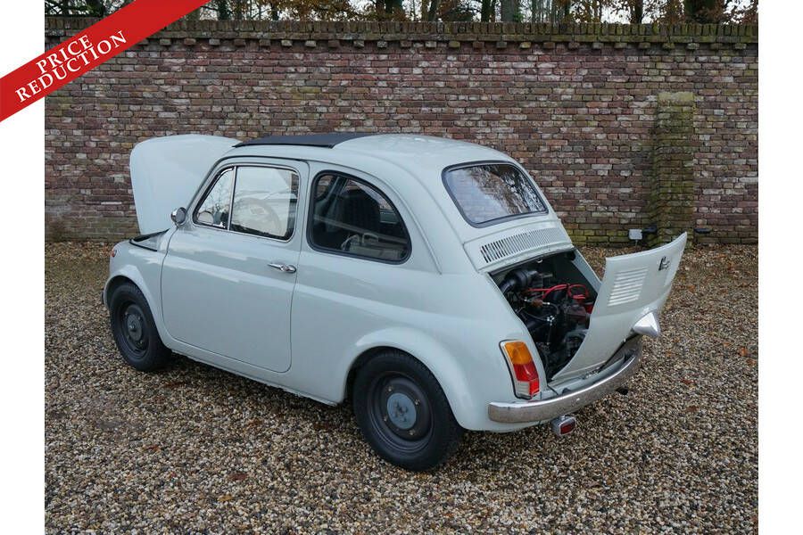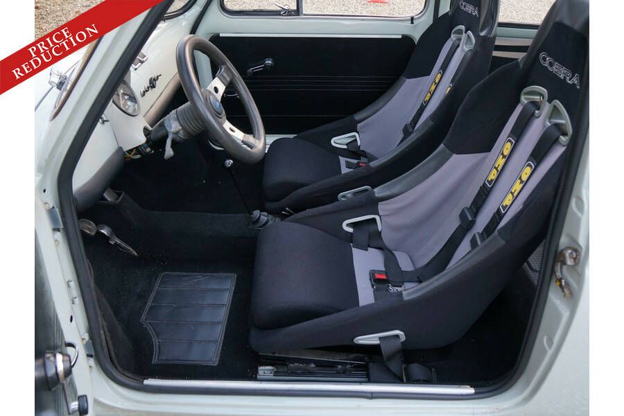A fun-filled 1969 Fiat 500 F. This Fiat was restored a few years ago. It is in fine condition and works and drives well. The fine bodywork has straight panels. The underbody is sound and rust-free. It has ‘Cobra’ bucket seats with 4-point harnesses and a sports steering wheel. It is an absolute car world icon and a special experience to drive.
