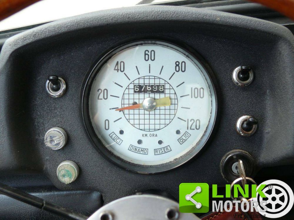 Carrozzeria in buonissime condizioni, nessuna presenza di corrosione. Vernice bianco pastello lucida, nessun difetto. Paraurti, maniglie e finiture esterne in cromo lucido perfettamente brillanti. Ruote in lamiera da 12 con copri cerchi specifici della Francis Lombardi, pneumatici al 90%.