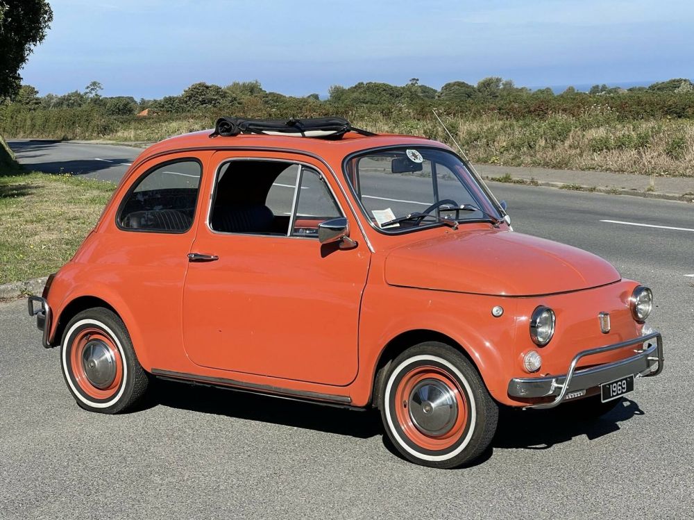The Fiat 500L offered here was first registered in Torino, Italy in November 1971. The ‘L’ or ‘Lusso’ model was a mildly improved version of the standard ‘F’ model. No mechanical changes of note, other than the fitment of radial tyres, the changes were to exterior brightwork and a more luxurious interior specification - luxurious being perhaps a rather grand description in this instance! The floor was now carpeted rather than simple rubber mats and some storage space was provided with a centre tunnel tray and improved door pockets. A new integrated instrument binnacle (with a fuel gauge!) was fitted in a matt black finished dashboard.