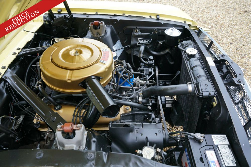 During the restoration, the car was completely disassembled. This immediately gave the people who carried out the restoration the opportunity to overhaul the entire technique. The 289 cubic inch V8 engine was not only overhauled, but the automatic transmission has already been overhauled. This large V8 was the top model in the convertible series of the Ford Mustang at the time. In addition, all attachments have been renewed. From hoses to cooler and from engine mount to couplings. Everything has been renewed and is still in good condition.