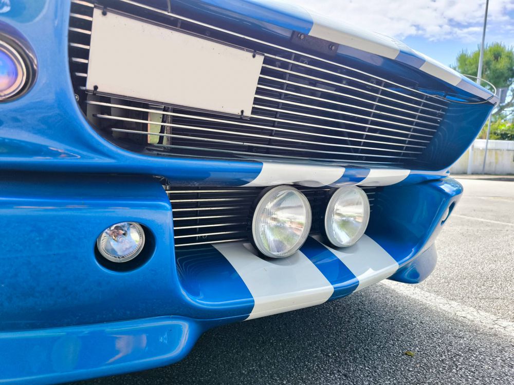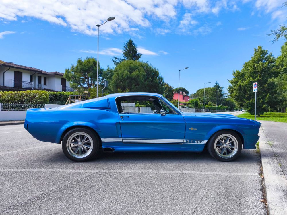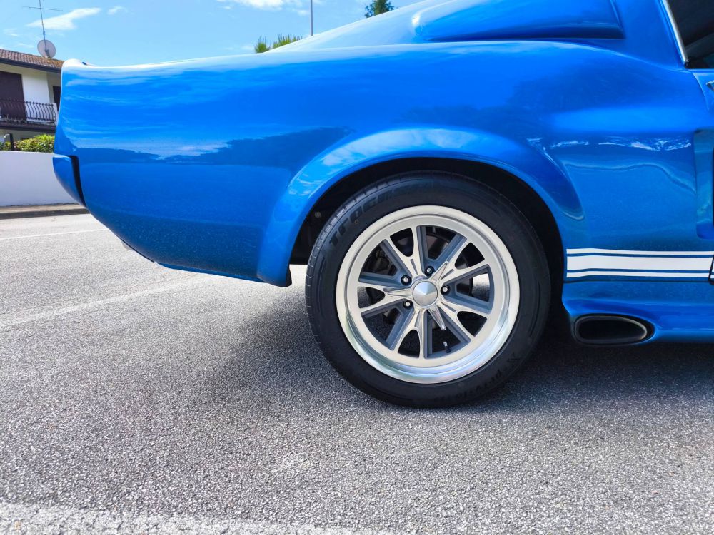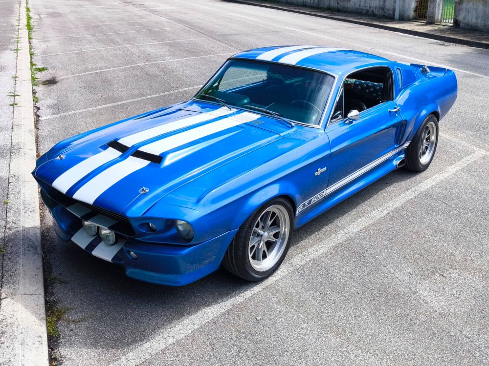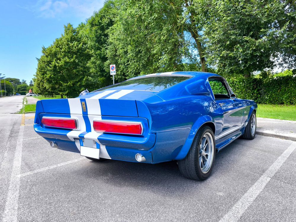Der Mustang wurde 2007 aus Kalifornien importiert, sandgestrahlt und auf Basis eines Fastback GT als Shelby GT500 Eleanor neu aufgebaut. 408 cid / 6.7 Liter Stroker Motor mit ca. 550 PS, Tremek 600 5-Gang-Getriebe, Scheibenbremsen vorne und hinten, Sperrdifferential, Doppelauspuffanlage. Elektrik, Kühler, Behälter, Schläuche, Reifen, Kupplung, Bremsscheiben uvm. wurden beim Aufbau erneuert. Der Aufbau ist komplett dokumentiert und mit Rechnungen belegbar. Italienische Zulassung.