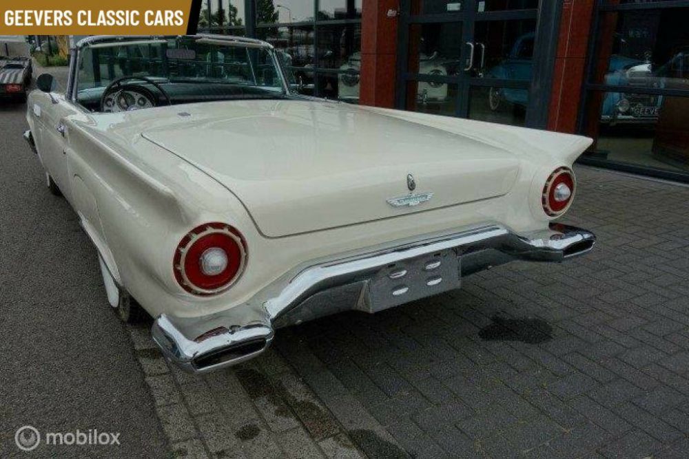 - Merk: Ford - Model: THUNDERBIRD - Tellerstand: 1 KM - Carrosserievorm: Cabrio - Aantal deuren: 2 - Brandstofsoort: Benzine - Bouwjaar: 1957 - Transmissie: Automaat - Kleur: wit - BTW/Marge: Marge, de BTW is niet aftrekbaar
